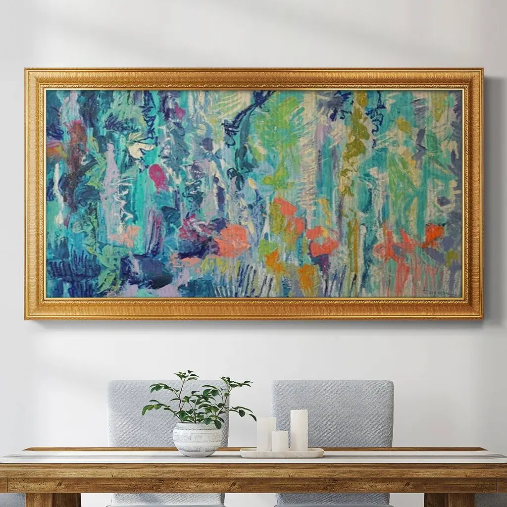 Downpour Butterflies Premium Framed Canvas- Ready to Hang A Premium Framed Canvas created to last. Framed in distressed wood and available in an array of sizes and colors Featuring a beveled a solid wood stretcher bar, each piece comes ready to hand 3 SIZES AVAILABLE 21''X37'' - Overall Size 25''X45'' - Overall Size 29''x53'' - Overall Size Each piece is made to order. Each piece comes with hanging hardware. Made in the USA Ready to Hang Giclee Paper Print Acrylic Glass Beveled Matt Board