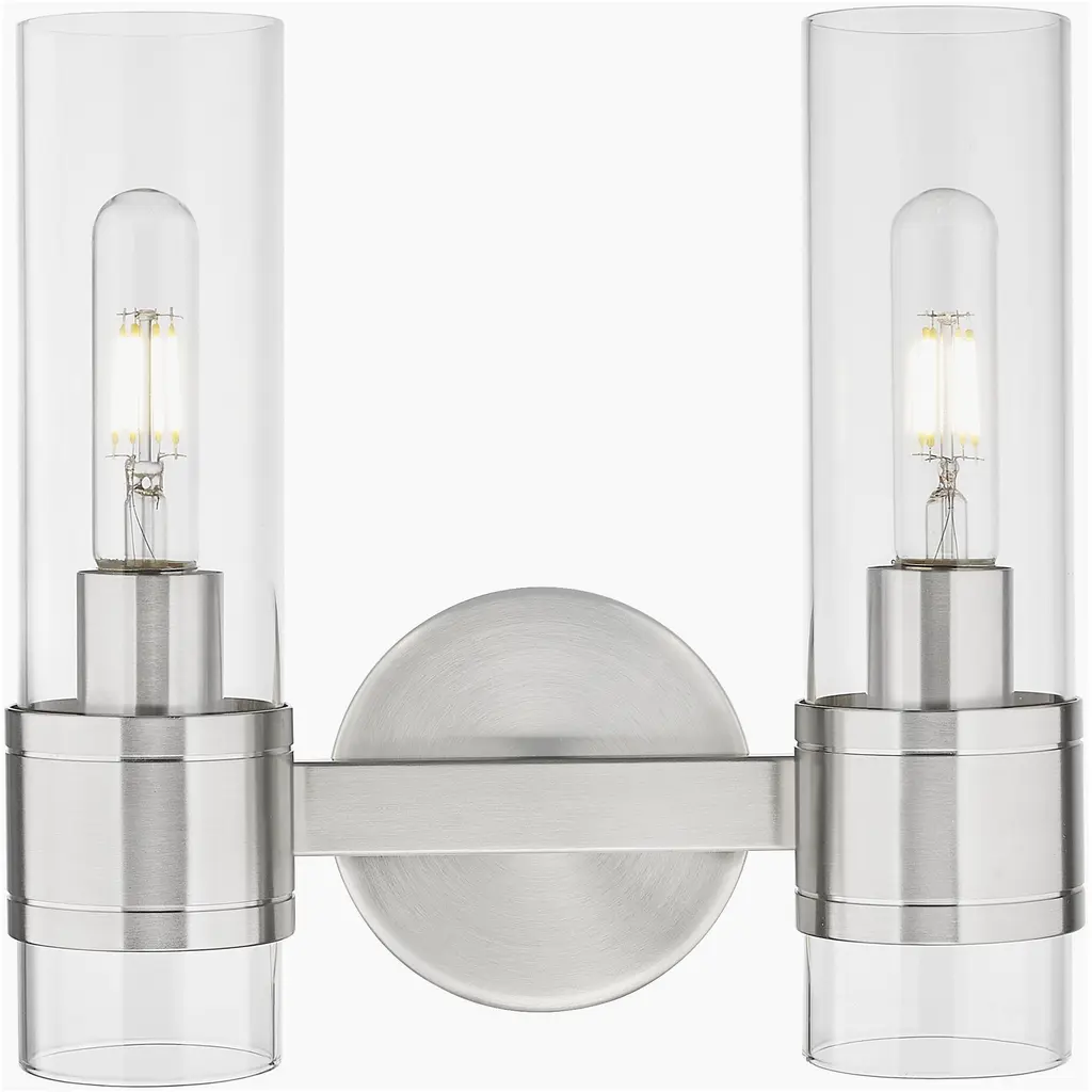 With an elongated glass shade and stunning metal band detail, this transitional glass cylinder sconce perfectly complements the Boreas collection, bringing elegance to any wall space.
