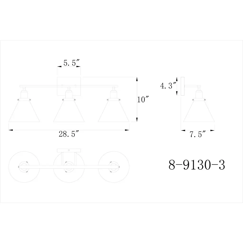 Drake 3 Light 28.5 Inch Polished Nickel Bathroom Vanity Light Wall Light, Essentials