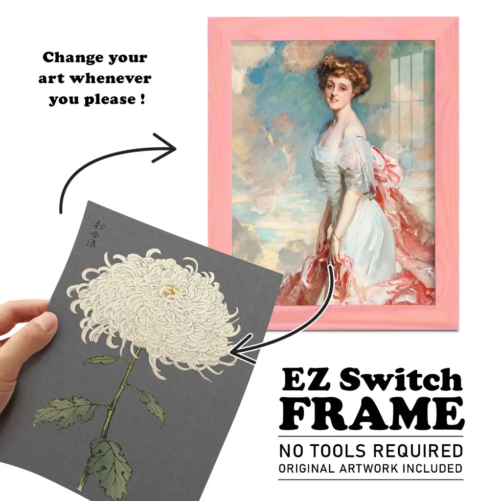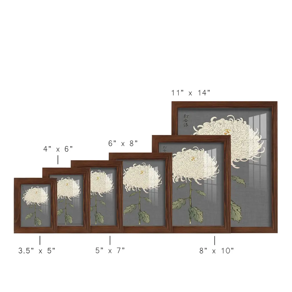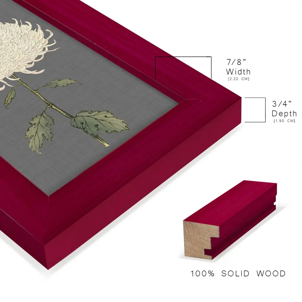 Dramatic Ivory Mums II -EZ SWITCH Framed Print w/glass-Cherry Red A delightful, framed print. Featuring a solid wood frame with real wood glass. This premium print is giclee quality. In addition, every frame features a removable back and table top stand. This allows you to change your art in the future or to just stand the art on a table for a new look. We are sure you'll enjoy our new series of EZ SWITCH Framed Art. Solid Wood Frame Real Glass Removable / Replaceable Art Built in Tabletop Stand Sizes range from 4x6 up to 12x15 - buy just one or pair them up as sets as you see fit.