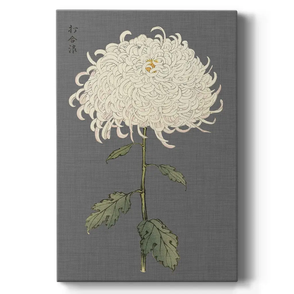 Dramatic Ivory Mums II Premium Gallery Wrapped Canvas - Ready to Hang A premium hand stretched gallery wrapped canvas print created to last. Featuring a beveled a solid wood stretcher bar, each piece comes ready to hand 6 SIZES AVAILABLE 8''X12'' - Overall Size 12''X18'' - Overall Size 18''X27'' - Overall Size 24''x36'' - Overall Size 32''x48'' - Overall Size 40''x60'' - Overall Size Each piece is made to order. Built to Last Each piece comes ready to hang Solid wood stretcher Fade and Water resistant Made domestically