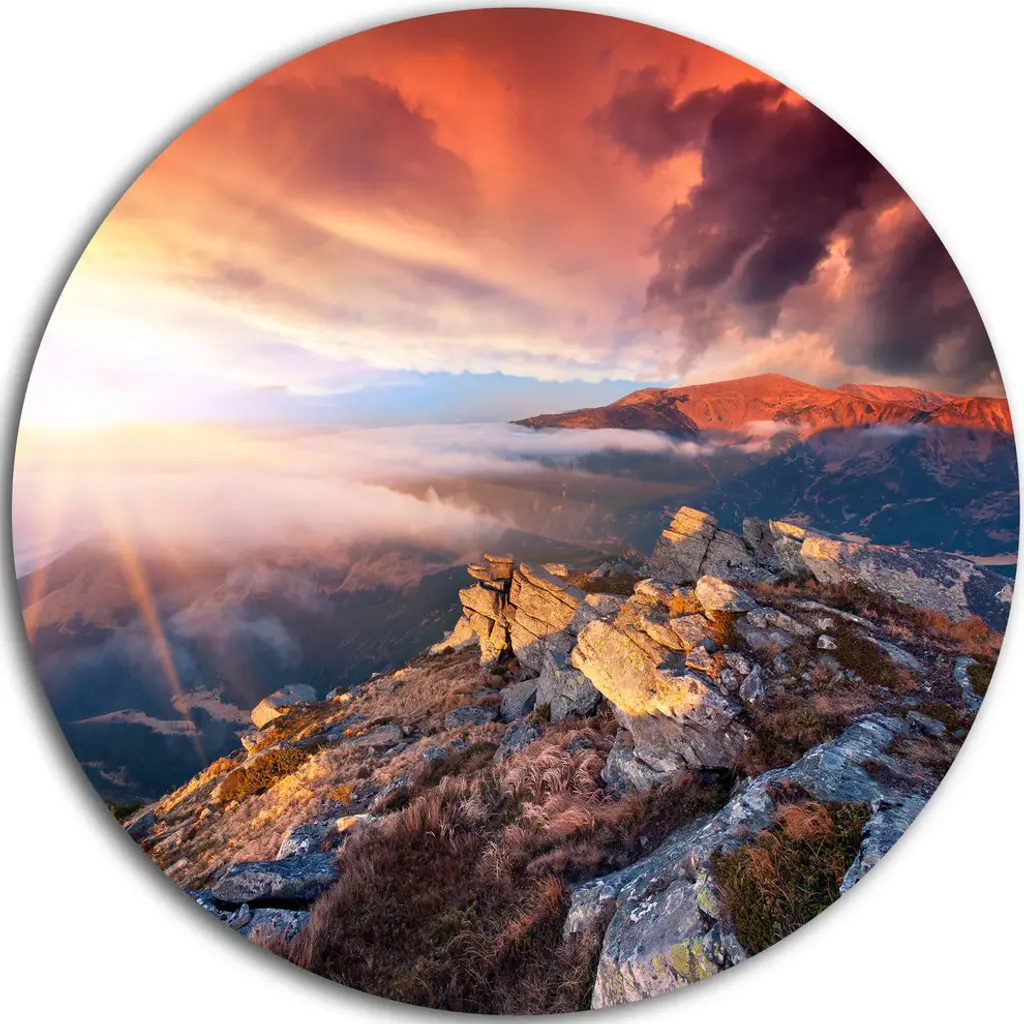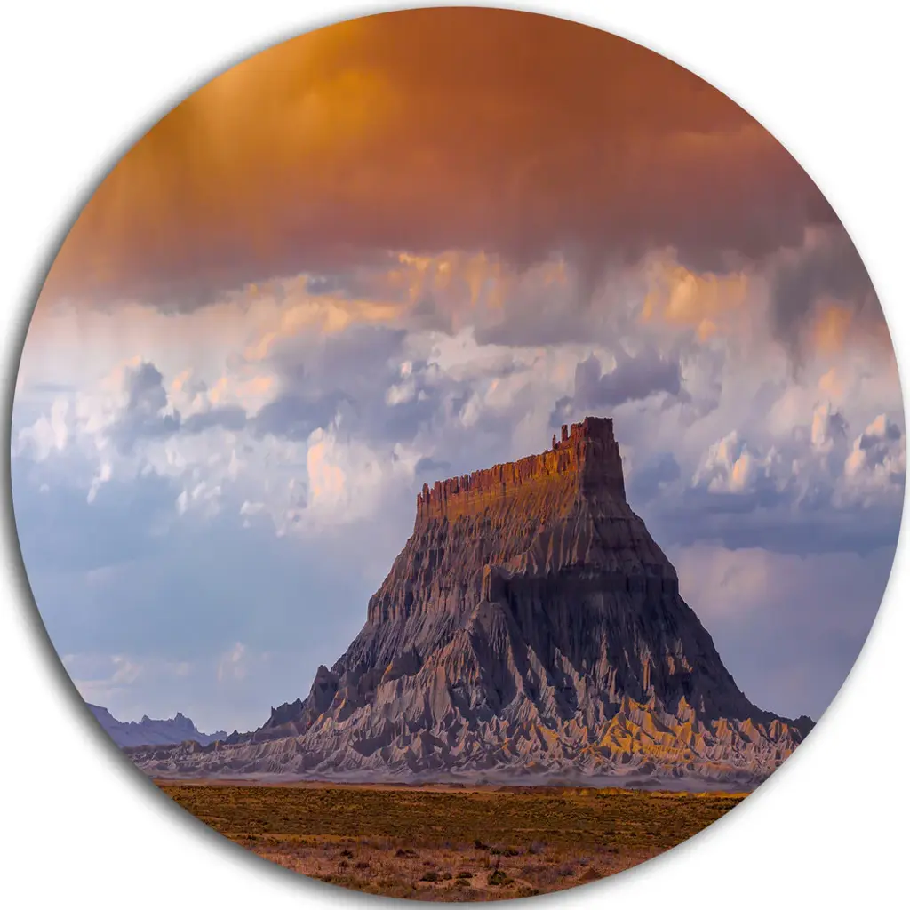 Bring Contemporary Abstraction to your home with this large Circle Metal wall art. This Dramatic Red Sunset at Desert Metal Artwork makes it the focal point of any room or office. - White Gloss Coating ensures colors are extra vibrant with light reflection.- Aluminum grade Sheet Metal with 1 inch mounting frame on the back giving the illusion that the artwork is floating on the wall..- Mounting Brackets are included along with instructions.- High Quality Digital images are created directly into a glossy aluminum panel producing a stunning and captivating print into the glossy finish of the metal.- Water, Fire and Scratch resistant HD Aluminum panels.- Looks better than any photo paper and guaranteed to last at least 20 years- Easy to clean with a microfiber cloth. Colors are far superior to regular Canvas Art. - Easy to Hang