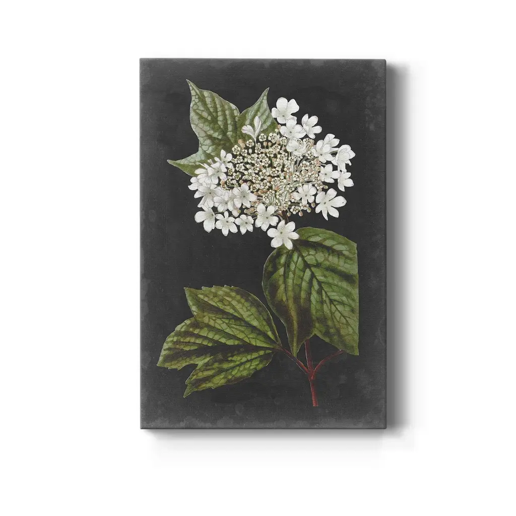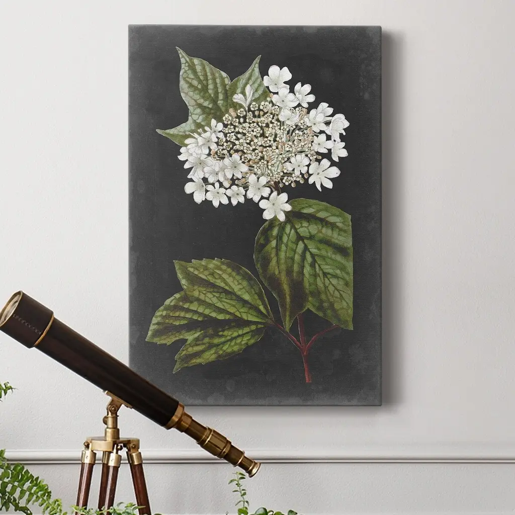Dramatic White Flowers III Premium Gallery Wrapped Canvas - Ready to Hang A premium hand stretched gallery wrapped canvas print created to last. Featuring a beveled a solid wood stretcher bar, each piece comes ready to hand 5 SIZES AVAILABLE 8''X12'' - Overall Size 16'X20'' - Overall Size 24''x32'' - Overall Size 30''x40'' - Overall Size 36''x48'' - Overall Size Each piece is made to order. Built to Last Each piece comes ready to hang Solid wood stretcher Fade and Water resistant Made domestically