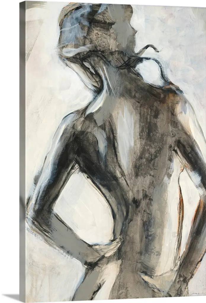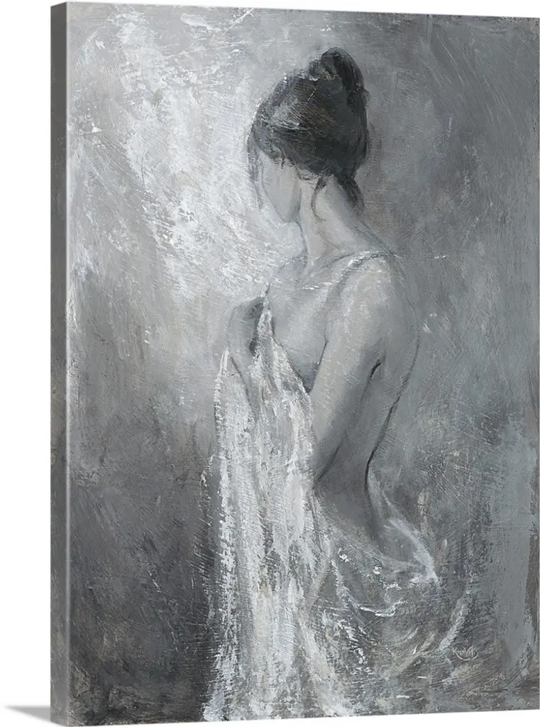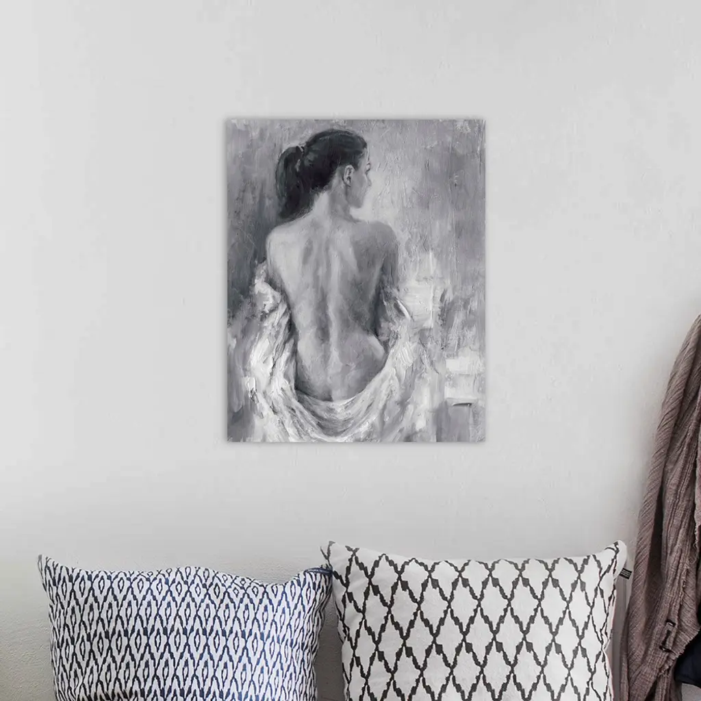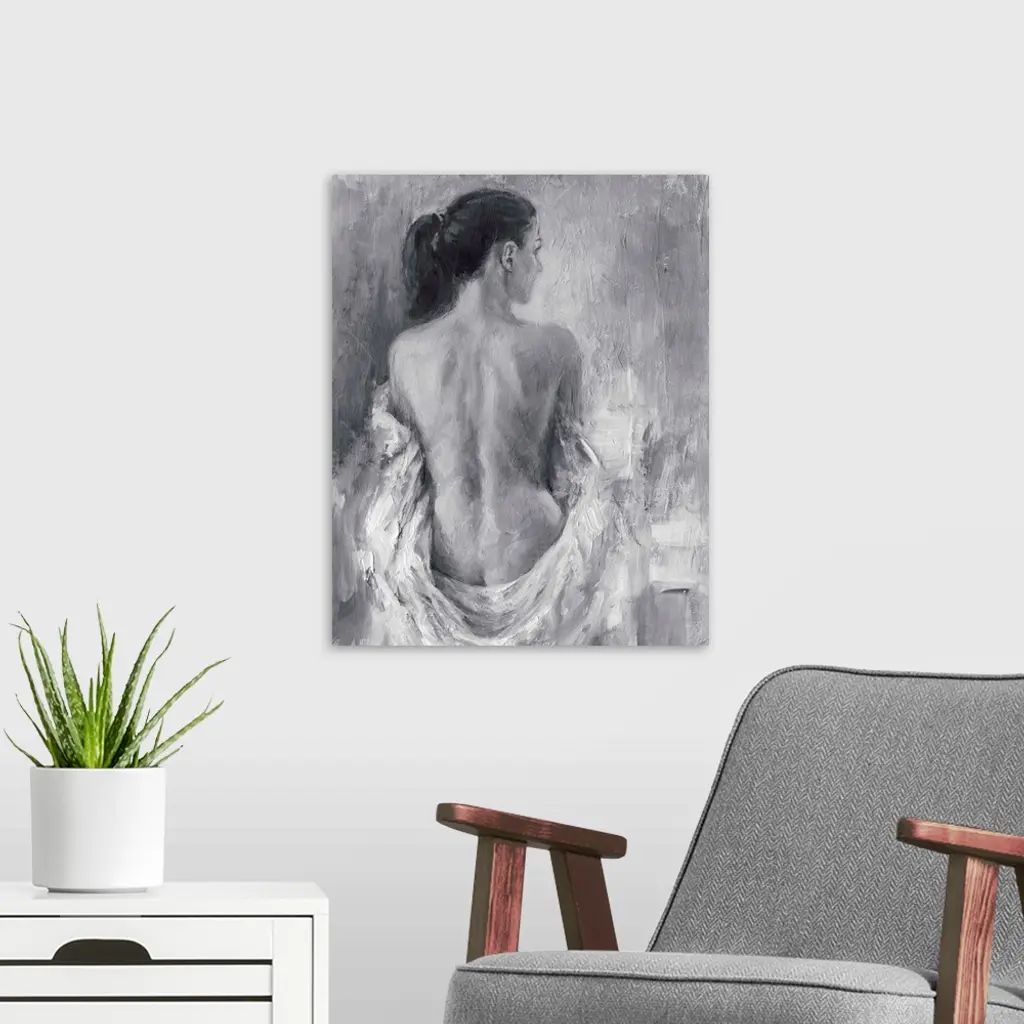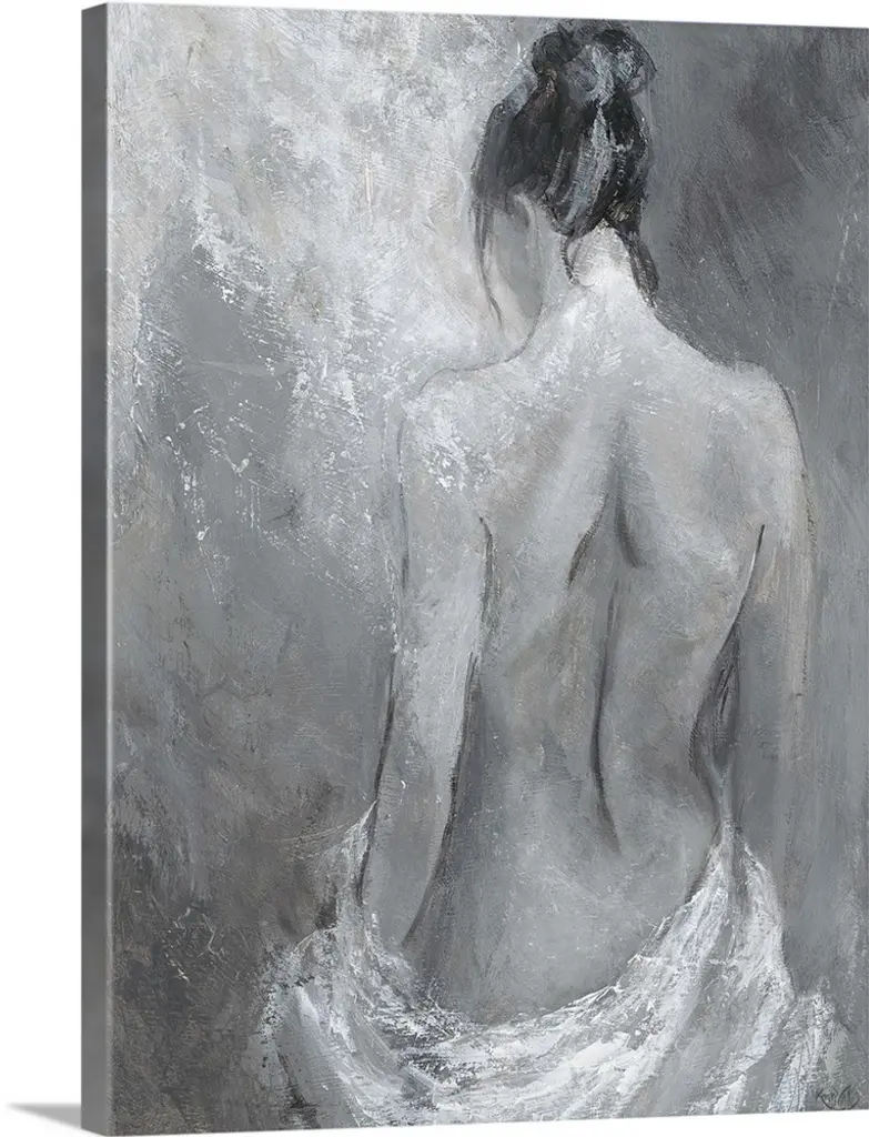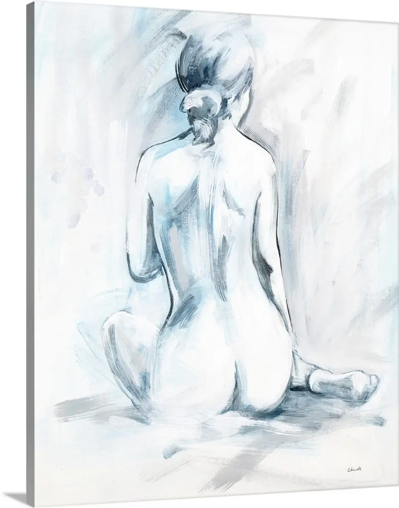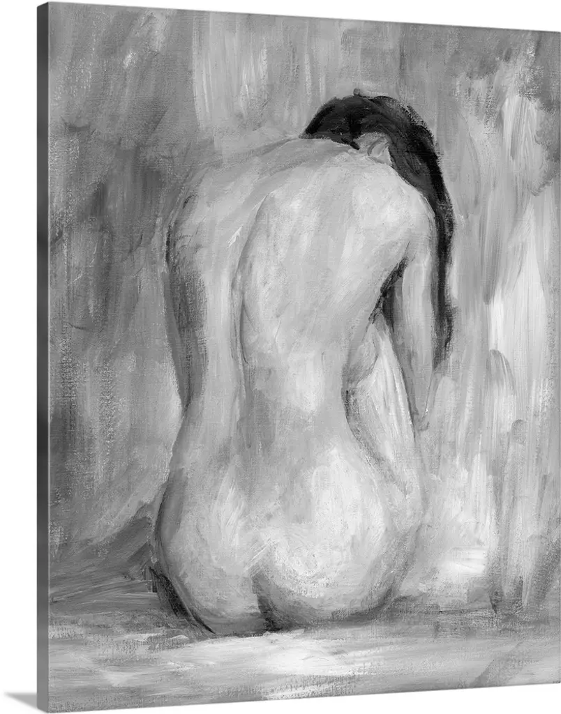 Contemporary sketch of a nude female sitting with a cloth draped around her.