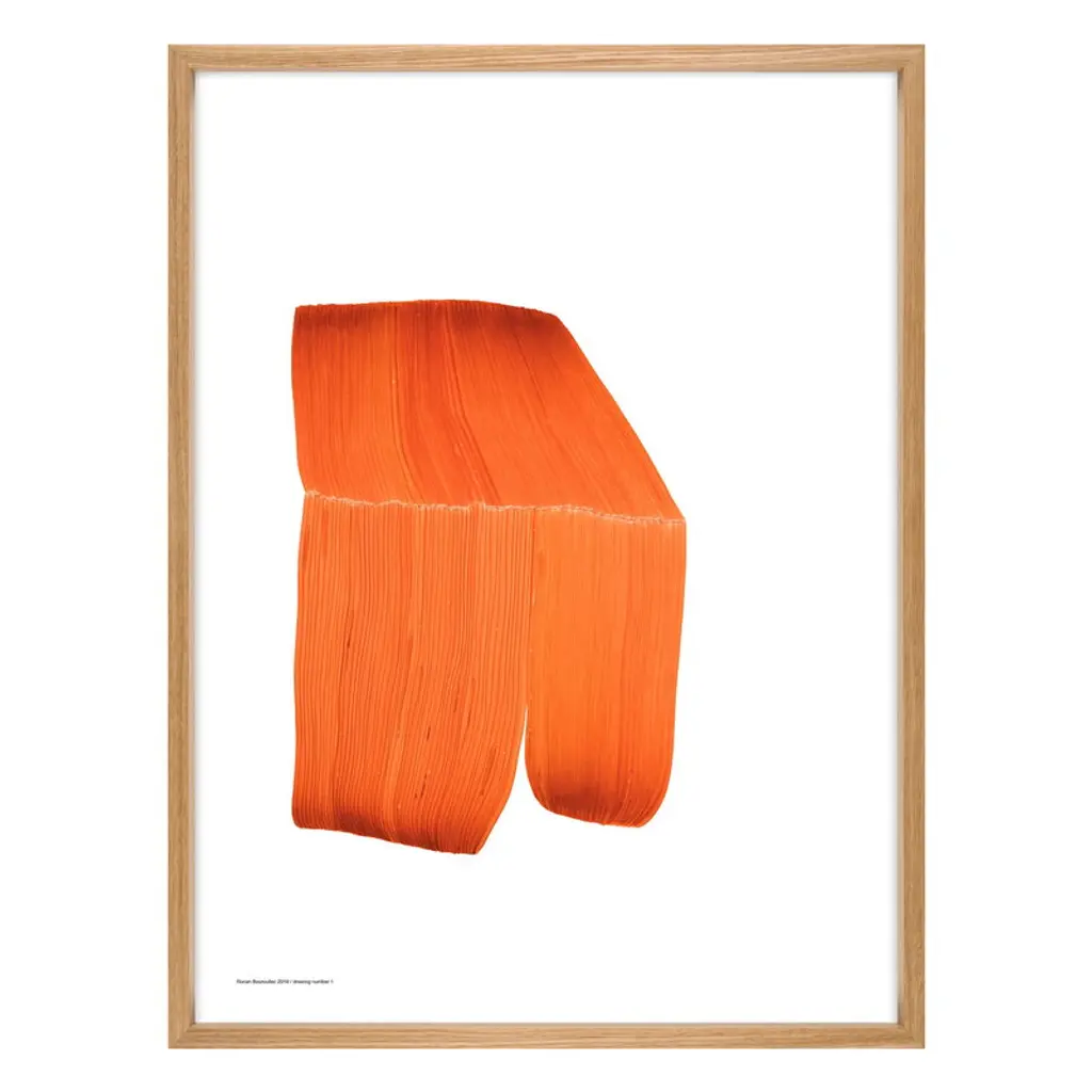 Ronan Bouroullec’s Drawing posters feature marker strokes that create fluid, abstract shapes with a fascinating sense of depth and dimension. For Bouroullec, drawing is a relaxing, even meditative process; he lets the felt-tip in his hand flow freely and intuitively on the paper without planning the shapes beforehand. Therefore, the shapes have no clear beginning or end, evoking a variety of interpretations. Drawing 3 is digitally printed on Chromolux coated matte paper. With this technique, the colored ink appears matte on the paper’s glossy surface, resembling Bouroullec’s real drawing technique. The poster comes with a plexiglass frame in natural solid oak.