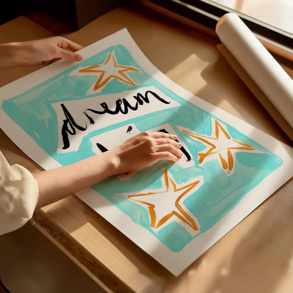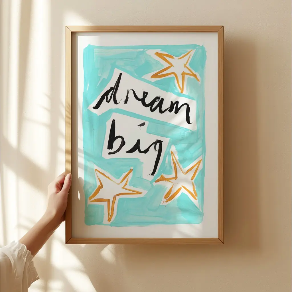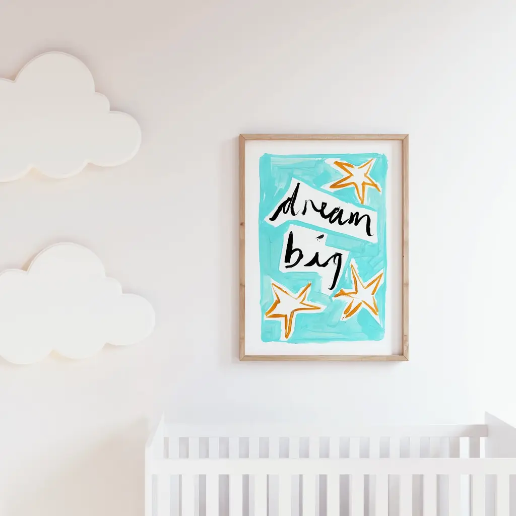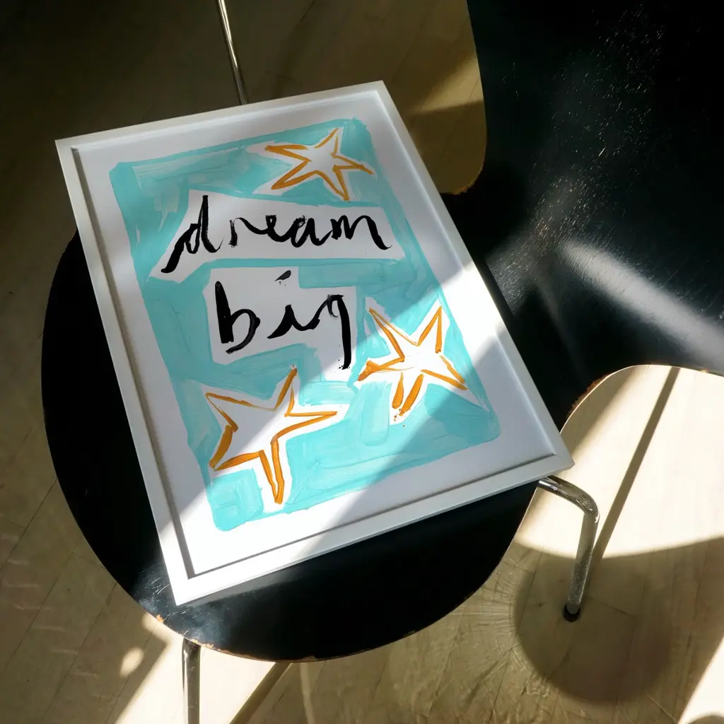Dream Big Hand Painted Art Print - A3Hand painted by Natalie and made into a beautiful print, this print is a perfect addition to any home decor. Smooth fine art 230 gsm matte card. Printed with vivid colour and detail. Sold without a frame.
