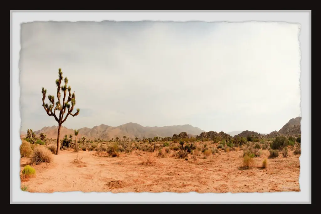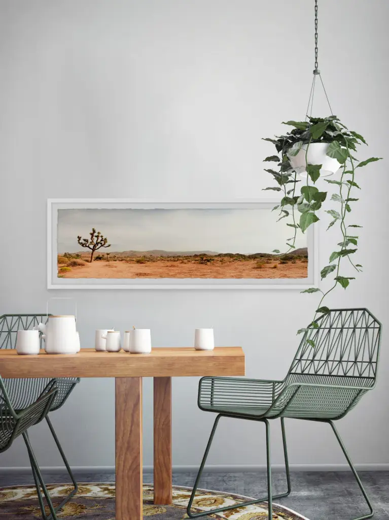 A deserted desert is shown in this photographic print that features an empty landscape with shrubbery and mountains. Proudly printed in the USA, this piece is printed on high quality archive paper and professionally hand-framed. With wall-mounting hooks included, this artful accent is ready to hang up as soon as it reaches your front door.- Top quality Giclee print on high resolution Archive Paper- Hand cut deckled edges- High quality durable non-warping frame- Finished under shatter resistant plexiglass- Arrives ready to hang- Includes a certificate of authenticity- Printed in the USA