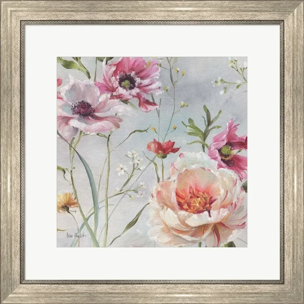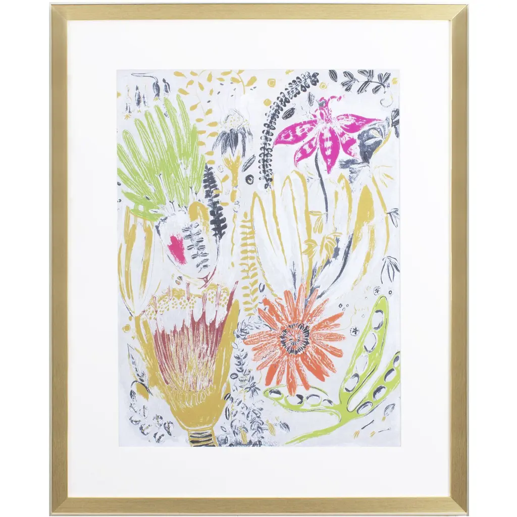 Oshibana (pressed plants) artwork in a 12" x 15" white frame.The pressed leaves and flowers are shown in their natural colors and beauty.