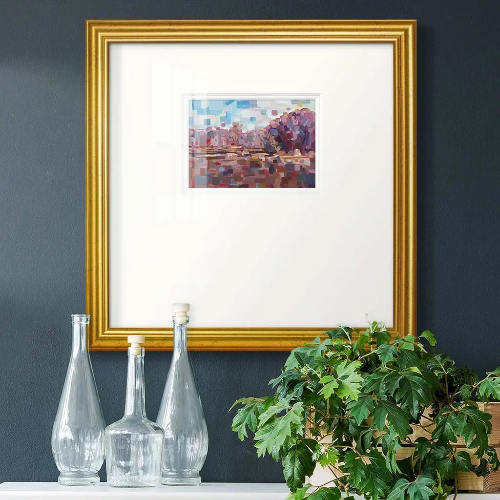 Dreams of Stone is an abstract artwork characterized by bold, angular shapes and a rich color palette, creating a sense of dynamic tension and movement. The interplay of sharp lines and fluid forms draws the viewer into a visually engaging, energetic composition.