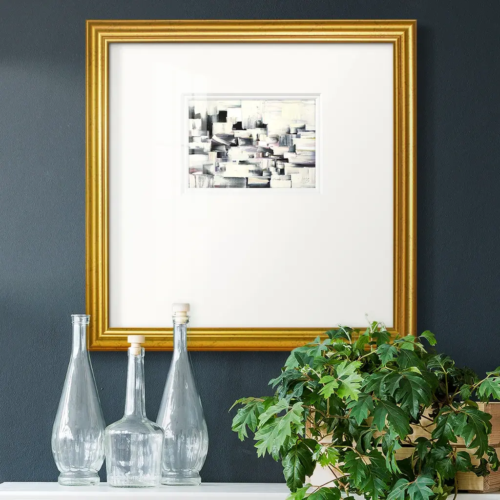 Dreams of Stone is an abstract artwork characterized by bold, angular shapes and a rich color palette, creating a sense of dynamic tension and movement. The interplay of sharp lines and fluid forms draws the viewer into a visually engaging, energetic composition.