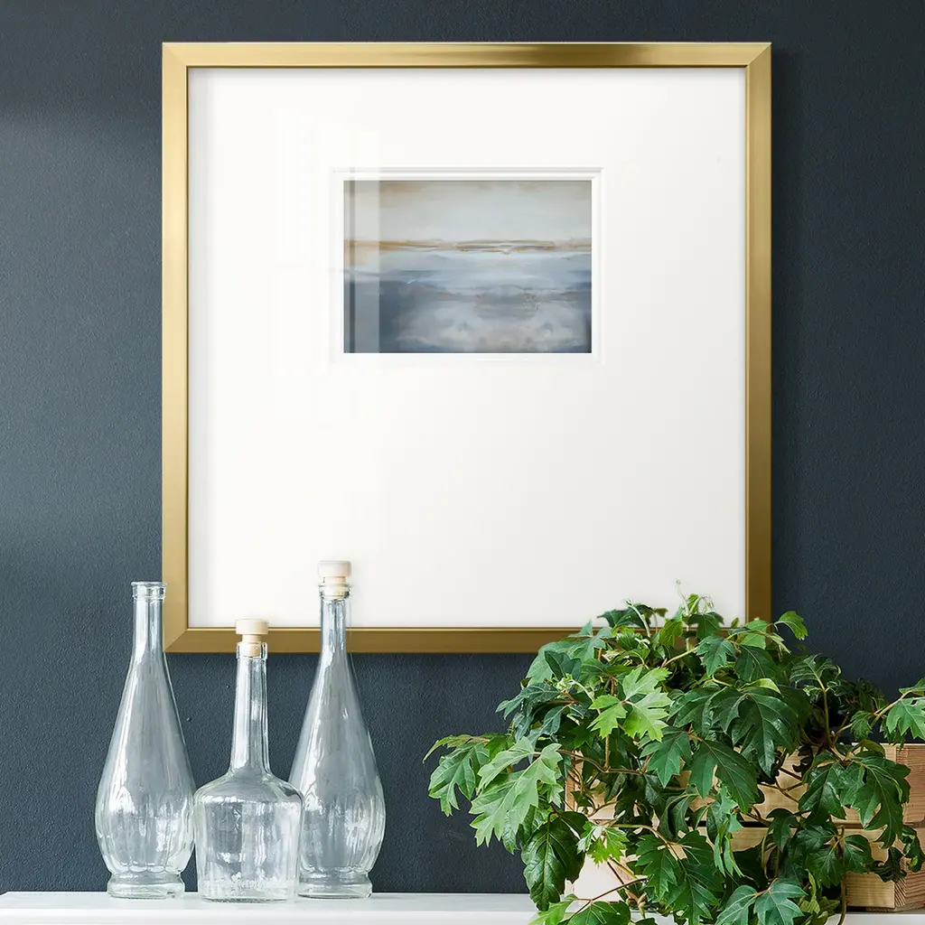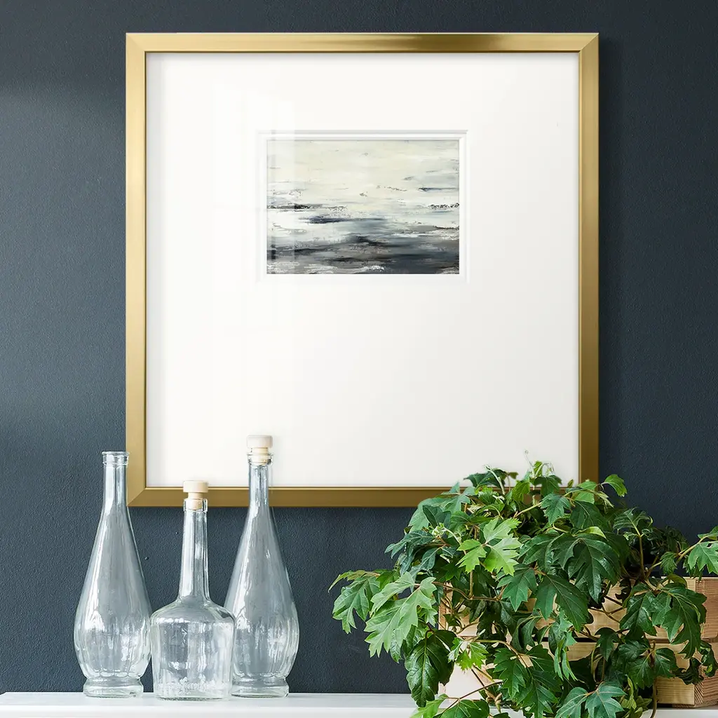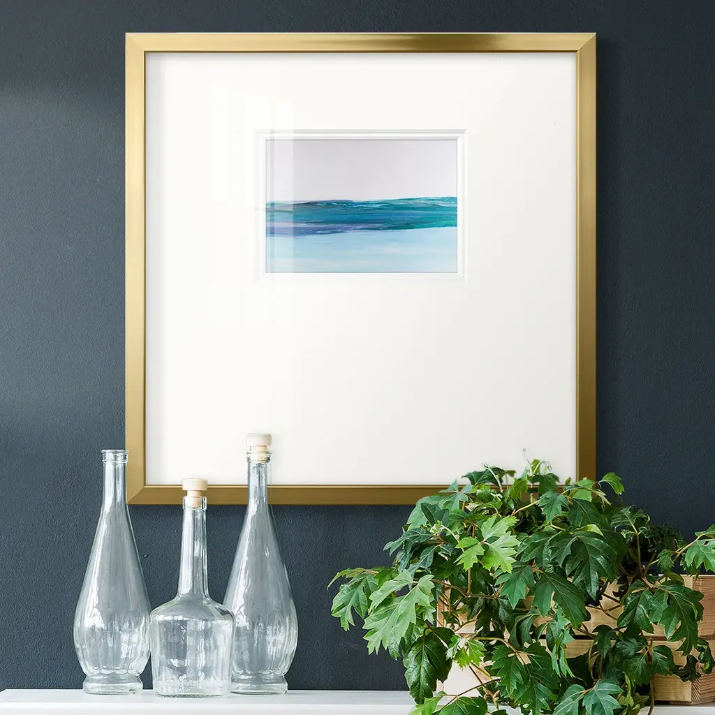 Exclusive hand painted on fine art paper with off-set matting. Framed in an antique silver wood with rubbed edges.