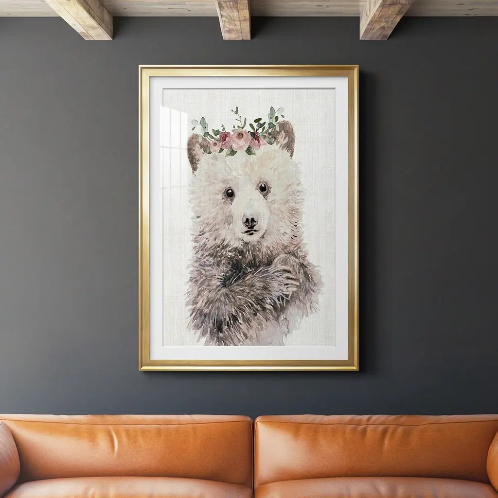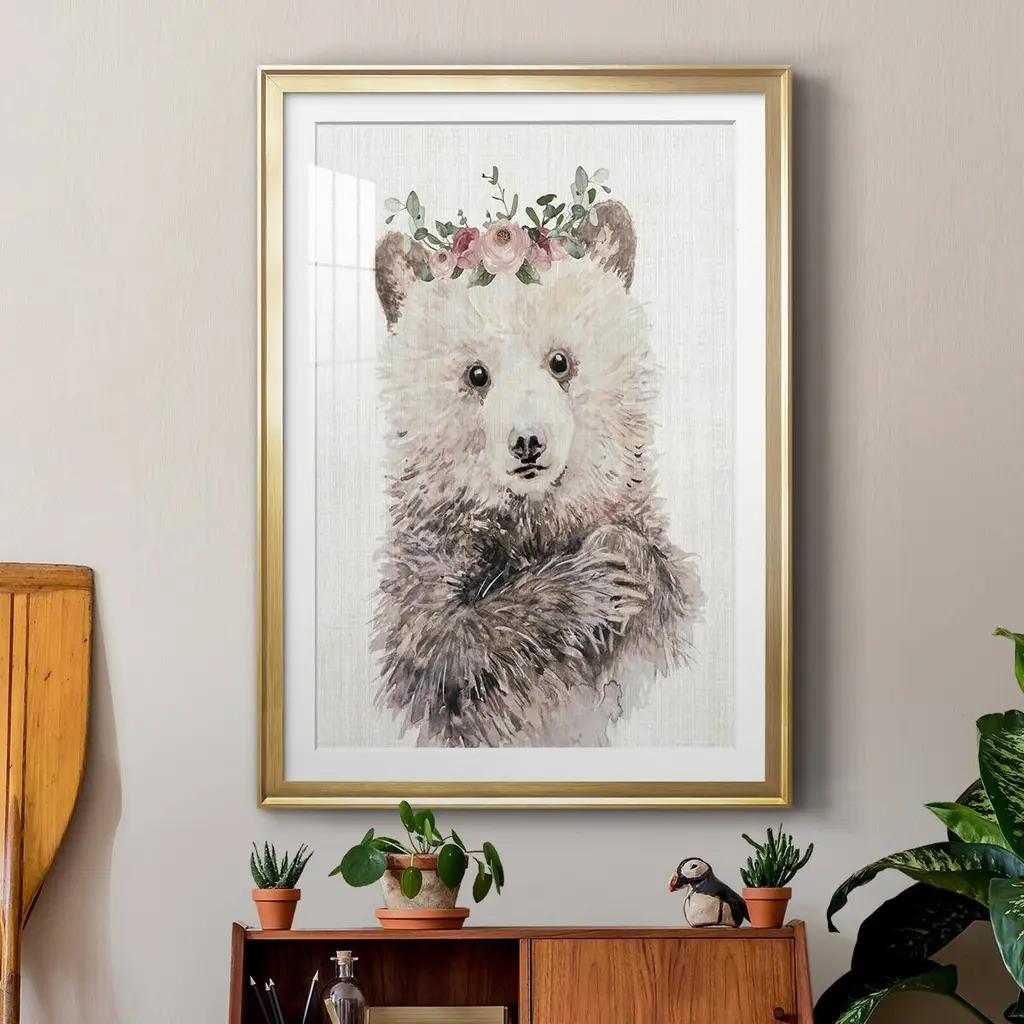 Dressy Cub Premium Framed Print - Ready to Hang A Premium Framed Print created to last. Framed in distressed wood and available in an array of sizes and colors Featuring a beveled a solid wood stretcher bar, each piece comes ready to hand 4 SIZES AVAILABLE 30.5''X42.5'' - Overall Size 26.5'X36.5'' - Overall Size 22.5''x30.5'' - Overall Size 18.5''x24.5'' - Overall Size Each piece is made to order. Each piece comes with hanging hardware. Made in the USA Ready to Hang Giclee Paper Print Acrylic Glass Beveled Matt Board