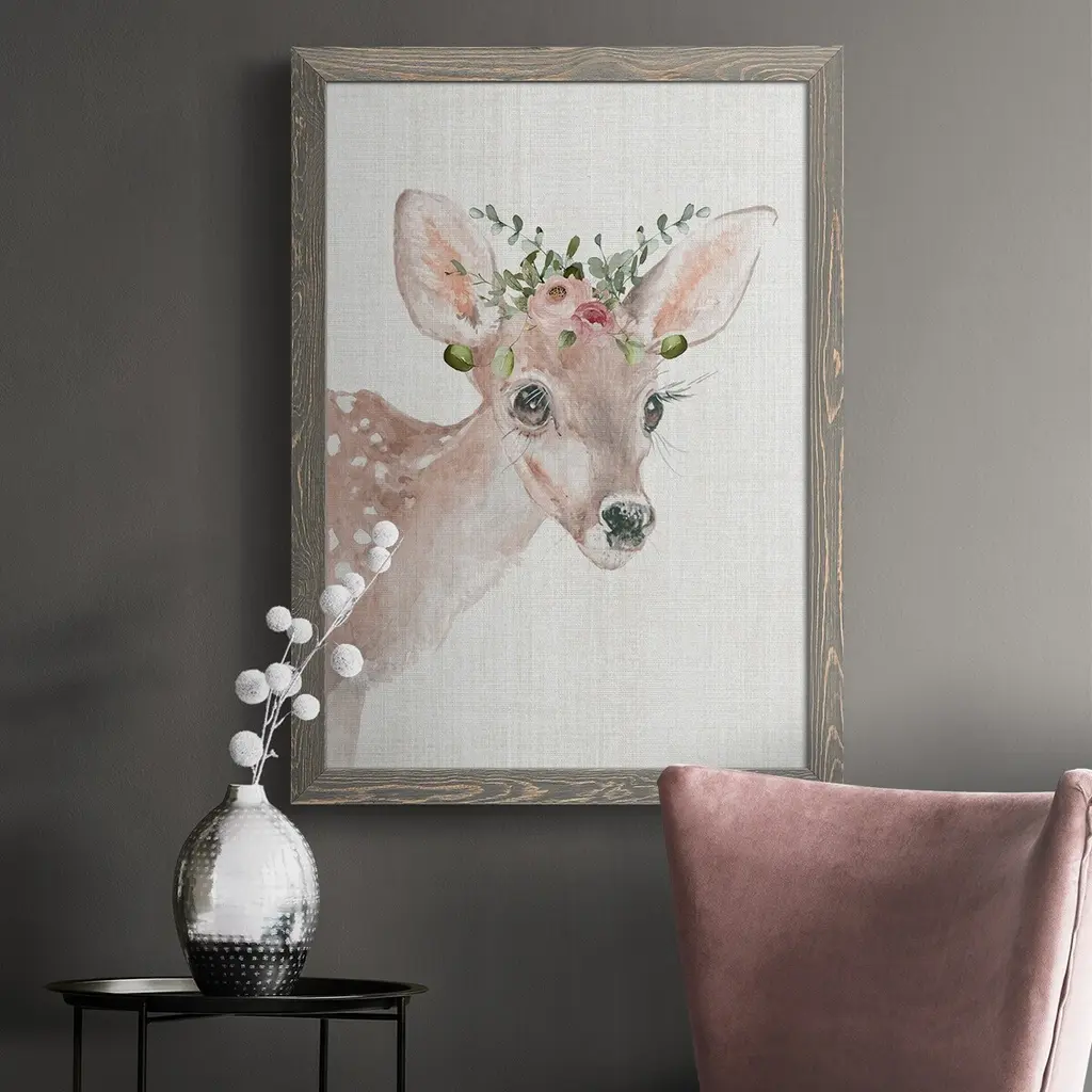 Dressy Fawn-Premium Framed Canvas - Ready To Hang - 31.5x43.5 - Walnut