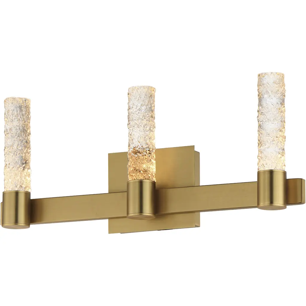 A modern take on a classic design, the Toffino vanity breathes new life to its traditional shape with a crackle glass shade and striking, modern finishes. Made to coordinate across a broader range of bath hardware and design styles, the Toffino is available in four popular finishes, Brushed Steel, Chrome, Midnight Black, and Satin Brass, and looks great on its own or installed above a bathroom vanity. This fixture may be mounted in the up or down position, and is cETLlistedfordamp locations, making it the perfect lighting solution for any space.