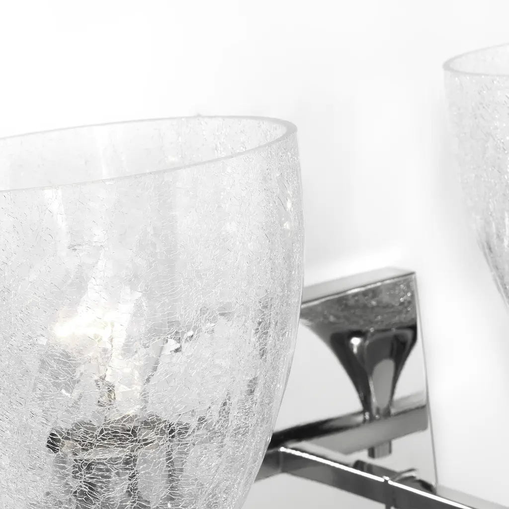 A modern take on a classic design, the Toffino vanity breathes new life to its traditional shape with a crackle glass shade and striking, modern finishes. Made to coordinate across a broader range of bath hardware and design styles, the Toffino is available in four popular finishes, Brushed Steel, Chrome, Midnight Black, and Satin Brass, and looks great on its own or installed above a bathroom vanity. This fixture may be mounted in the up or down position, and is cETLlistedfordamp locations, making it the perfect lighting solution for any space.