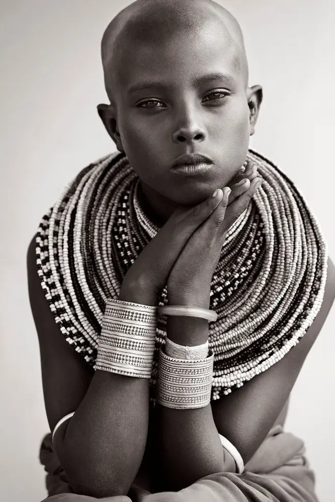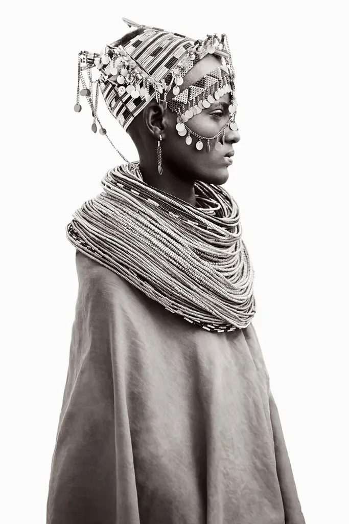 This work is part of Drew Doggett’s "Desert Song: Compositions of Kenya" series, which presents the women and children of the resilient Rendille and Samburu tribes in portraiture that pays homage to modern and contemporary fashion photography. Dressed in the traditional clothing native to this desert territory, the visual language of this series blurs geographic and cultural lines and reveals a people exuding an enviable harmony with their land. From a limited edition of 75, this work is printed on Hahnemühle FineArt Baryta paper, which sets the standard for image definition and color depth. Each print includes an embossed certificate of authenticity and is signed and numbered.