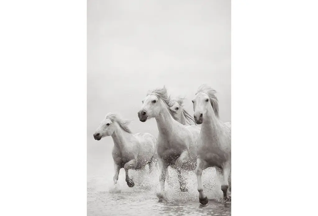 This breathtaking image from Drew Doggett is part of his "Band of Rebels: White Horses of Camargue" series. The all-white horses of Camargue are most identifiable by their signature color and prominent features; they are believed to have descended from prehistoric horses dating back 17,000 years. For this series, Doggett documents the grace, power, and majesty of these wild animals against the monotone backdrop of their native habitat in Camargue, a remote part of Southern France. From a limited edition of 125, this work is printed on Hahnemühle FineArt Baryta paper, which sets the standard for image definition and color depth. Each print includes an embossed certificate of authenticity and is signed and numbered.