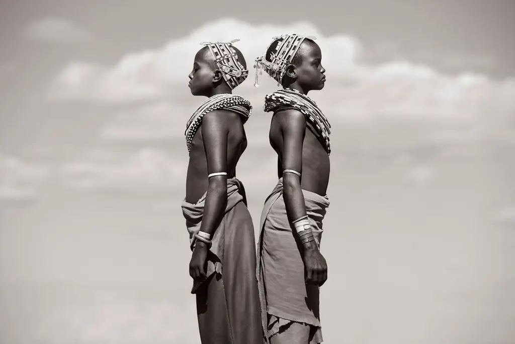 This work is part of Drew Doggett’s "Desert Song: Compositions of Kenya" series, which presents the women and children of the resilient Rendille and Samburu tribes in portraiture that pays homage to modern and contemporary fashion photography. Dressed in the traditional clothing native to this desert territory, the visual language of this series blurs geographic and cultural lines and reveals a people exuding an enviable harmony with their land. From a limited edition of 75, this work is printed on Hahnemühle FineArt Baryta paper, which sets the standard for image definition and color depth. Each print includes an embossed certificate of authenticity and is signed and numbered.