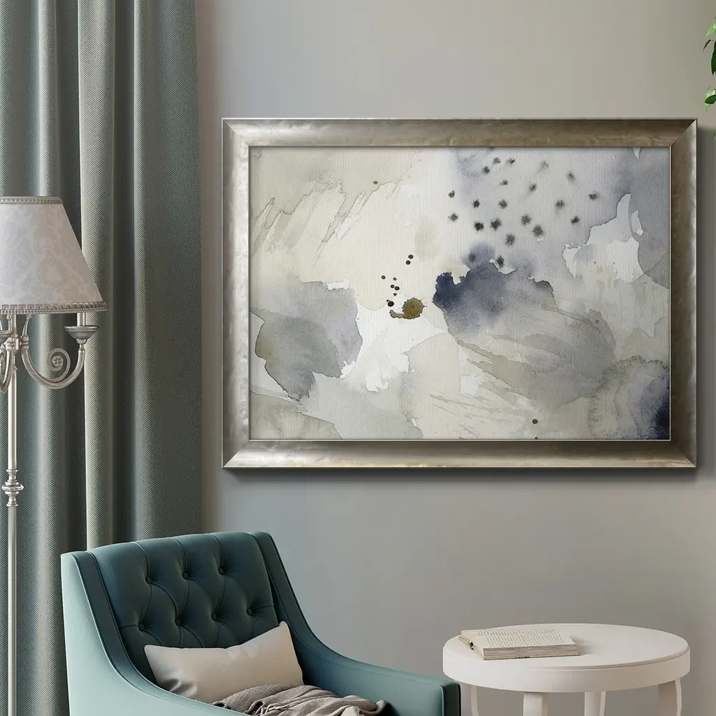 Dried Bergamot in Mist II Premium Framed Canvas- Ready to Hang A Premium Framed Canvas created to last. Framed in distressed wood and available in an array of sizes and colors Featuring a beveled a solid wood stretcher bar, each piece comes ready to hand 3 SIZES AVAILABLE 16''X20'' - Overall Size 18'X27'' - Overall Size 24''x36'' - Overall Size Each piece is made to order. Each piece comes with hanging hardware. Made in the USA Ready to Hang Giclee Paper Print Acrylic Glass Beveled Matt Board