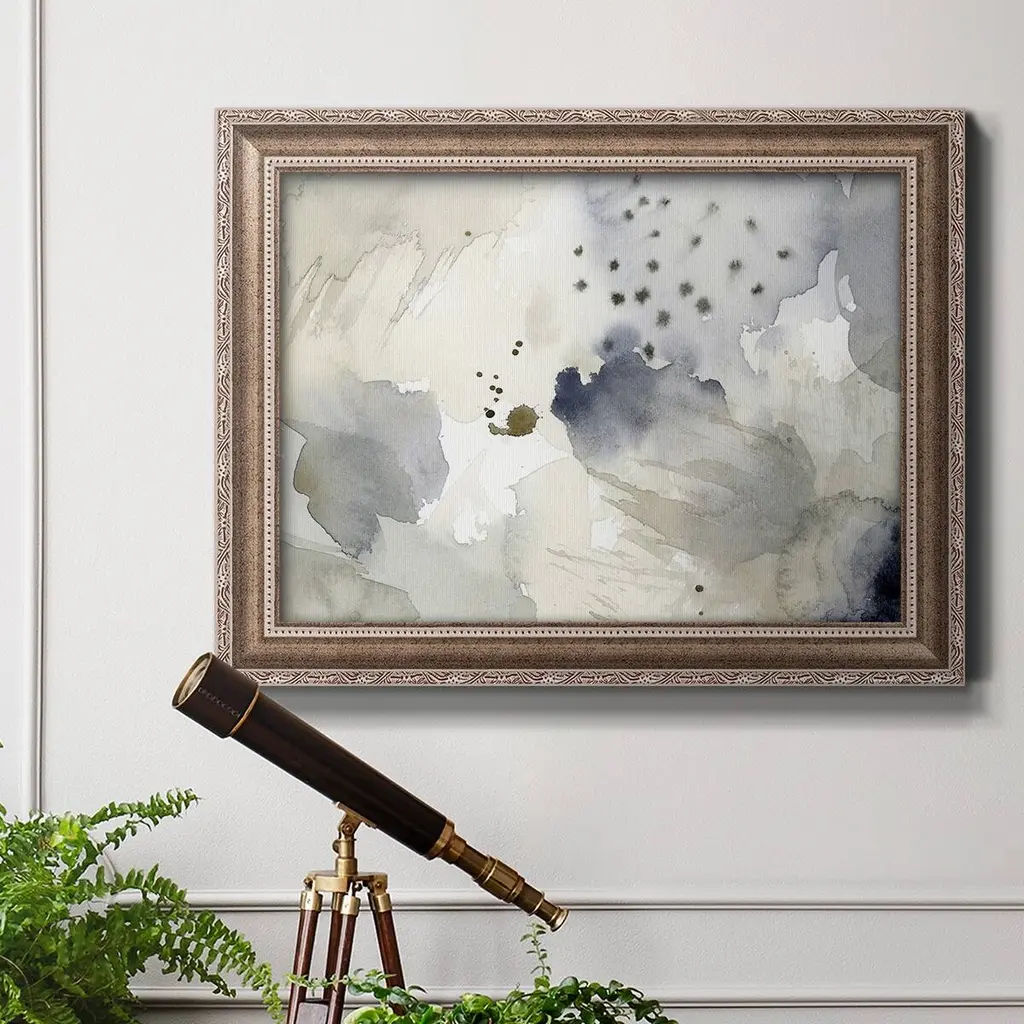 Dried Bergamot in Mist II Premium Framed Canvas- Ready to Hang A Premium Framed Canvas created to last. Framed in distressed wood and available in an array of sizes and colors Featuring a beveled a solid wood stretcher bar, each piece comes ready to hand 3 SIZES AVAILABLE 16''X20'' - Overall Size 18'X27'' - Overall Size 24''x36'' - Overall Size Each piece is made to order. Each piece comes with hanging hardware. Made in the USA Ready to Hang Giclee Paper Print Acrylic Glass Beveled Matt Board
