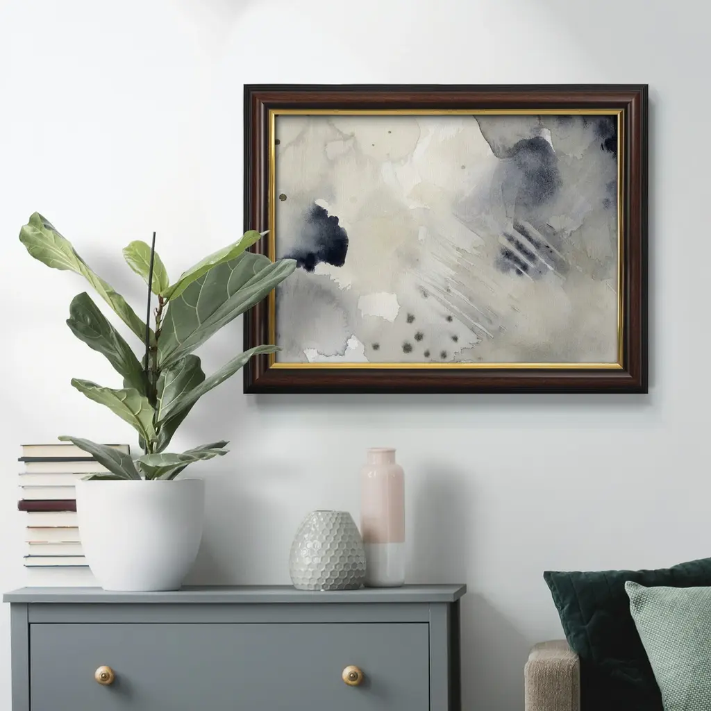 Dried Bergamot in Mist III Premium Framed Canvas- Ready to Hang A Premium Framed Canvas created to last. Framed in distressed wood and available in an array of sizes and colors Featuring a beveled a solid wood stretcher bar, each piece comes ready to hand 3 SIZES AVAILABLE 16''X20'' - Overall Size 18'X27'' - Overall Size 24''x36'' - Overall Size Each piece is made to order. Each piece comes with hanging hardware. Made in the USA Ready to Hang Giclee Paper Print Acrylic Glass Beveled Matt Board