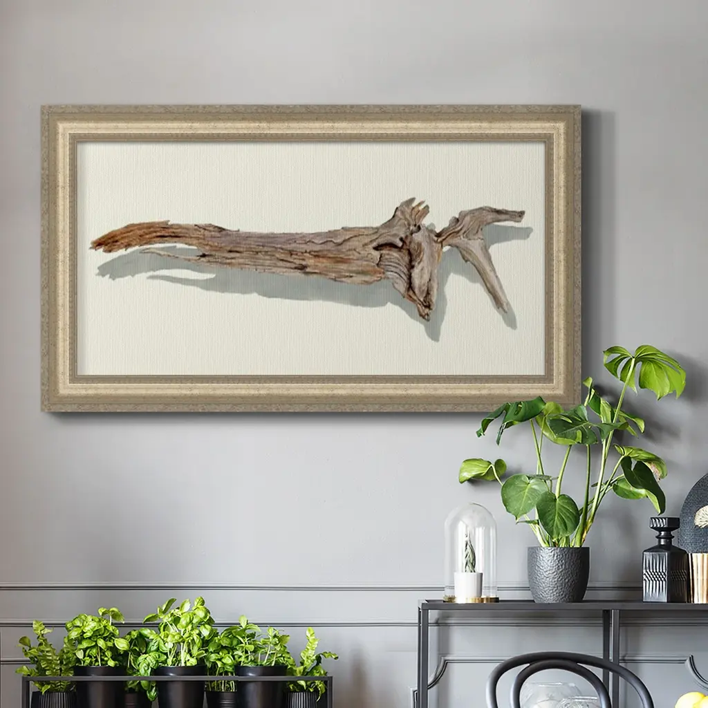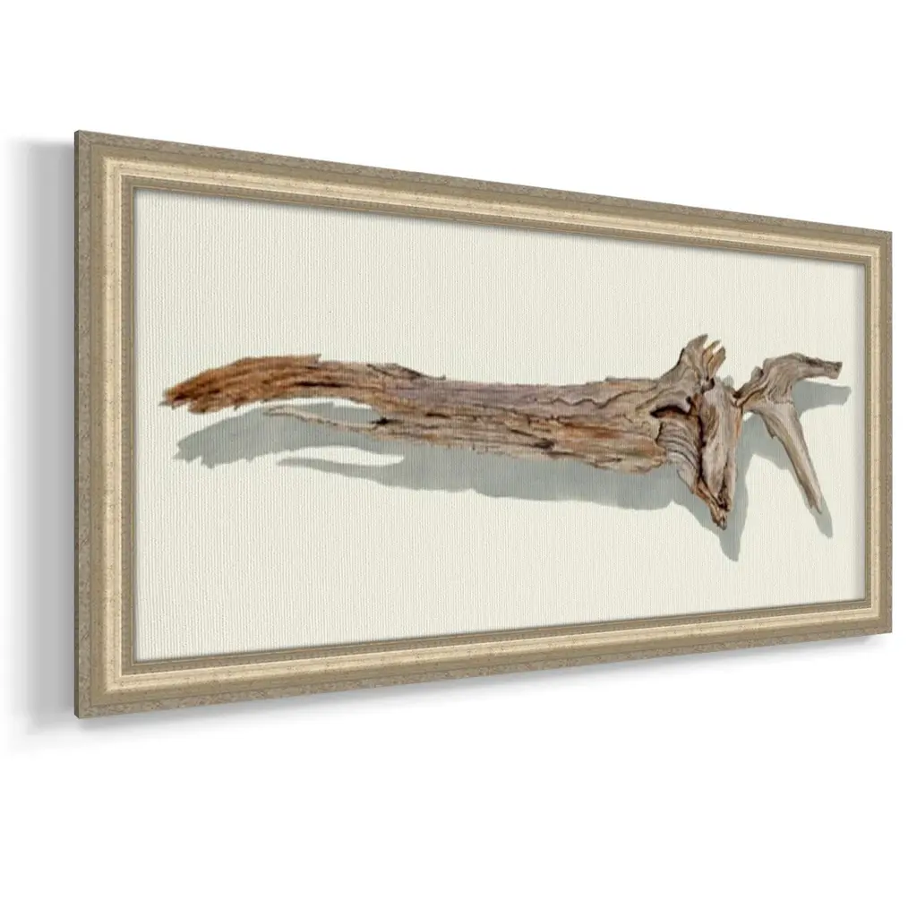 Driftwood Study II Premium Framed Canvas- Ready to Hang A Premium Framed Canvas created to last. Framed in distressed wood and available in an array of sizes and colors Featuring a beveled a solid wood stretcher bar, each piece comes ready to hand 3 SIZES AVAILABLE 21''X37'' - Overall Size 25''X45'' - Overall Size 29''x53'' - Overall Size Each piece is made to order. Each piece comes with hanging hardware. Made in the USA Ready to Hang Giclee Paper Print Acrylic Glass Beveled Matt Board