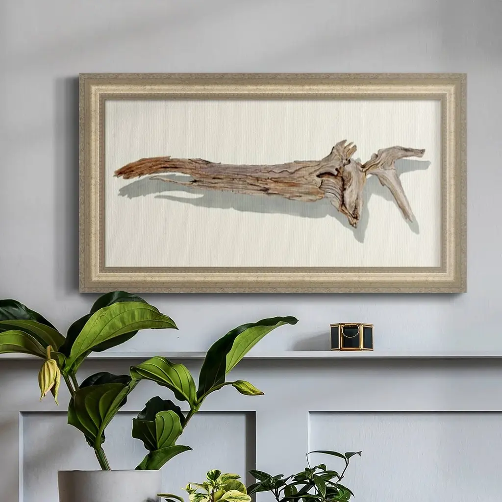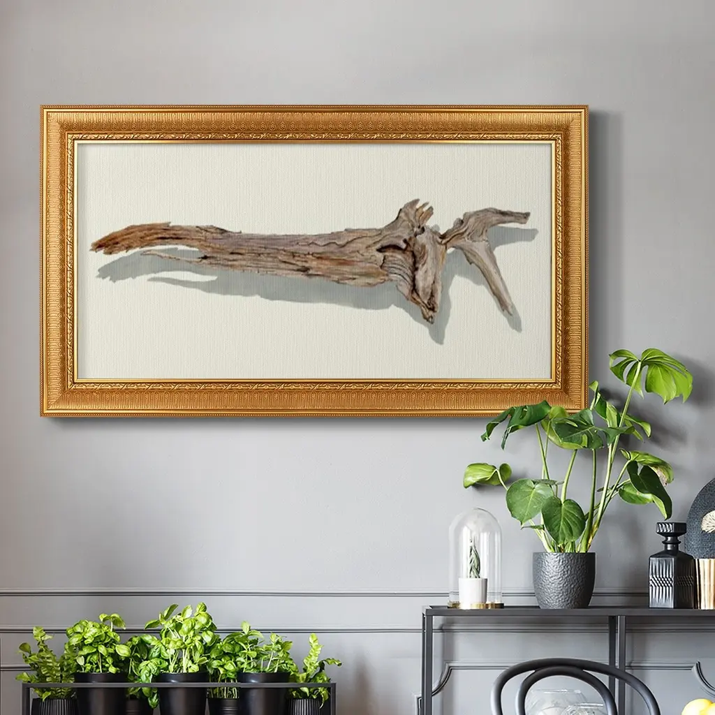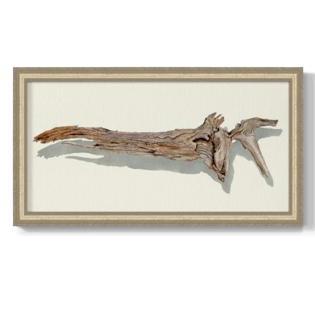 Driftwood Study II Premium Framed Canvas- Ready to Hang A Premium Framed Canvas created to last. Framed in distressed wood and available in an array of sizes and colors Featuring a beveled a solid wood stretcher bar, each piece comes ready to hand 3 SIZES AVAILABLE 21''X37'' - Overall Size 25''X45'' - Overall Size 29''x53'' - Overall Size Each piece is made to order. Each piece comes with hanging hardware. Made in the USA Ready to Hang Giclee Paper Print Acrylic Glass Beveled Matt Board