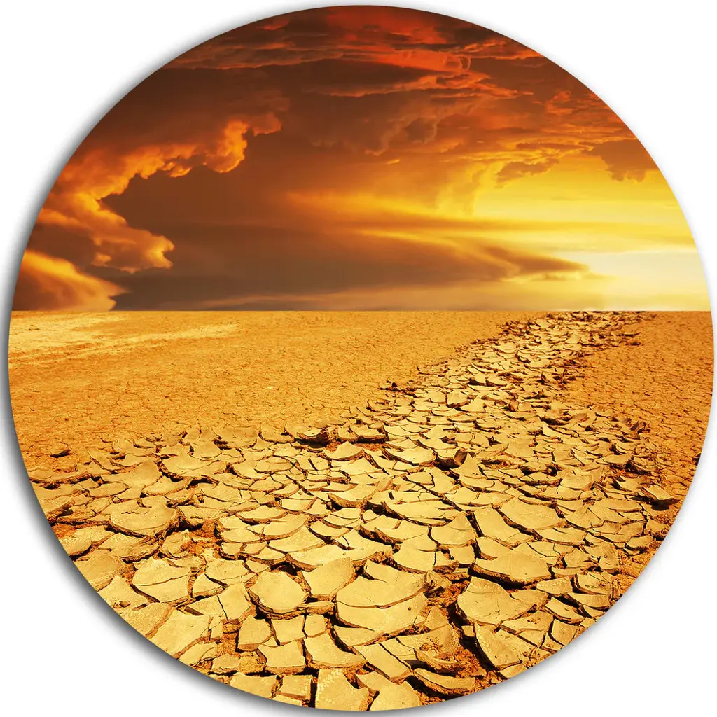 Bring Contemporary Abstraction to your home with this large Circle Metal wall art. This Drought Land under Dramatic Sky Metal Artwork makes it the focal point of any room or office. - White Gloss Coating ensures colors are extra vibrant with light reflection.- Aluminum grade Sheet Metal with 1 inch mounting frame on the back giving the illusion that the artwork is floating on the wall..- Mounting Brackets are included along with instructions.- High Quality Digital images are created directly into a glossy aluminum panel producing a stunning and captivating print into the glossy finish of the metal.- Water, Fire and Scratch resistant HD Aluminum panels.- Looks better than any photo paper and guaranteed to last at least 20 years- Easy to clean with a microfiber cloth. Colors are far superior to regular Canvas Art. - Easy to Hang