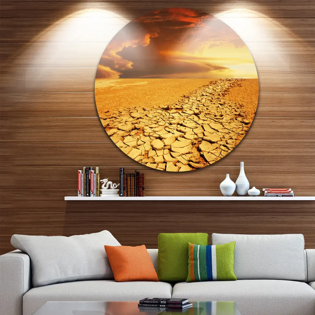 Drought Land Under Dramatic Sky, Modern Landscape Round Wall Art, 36"