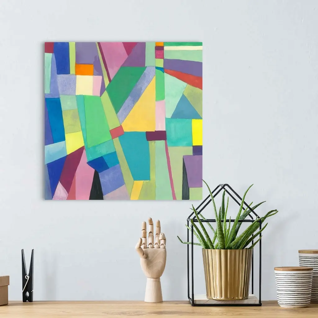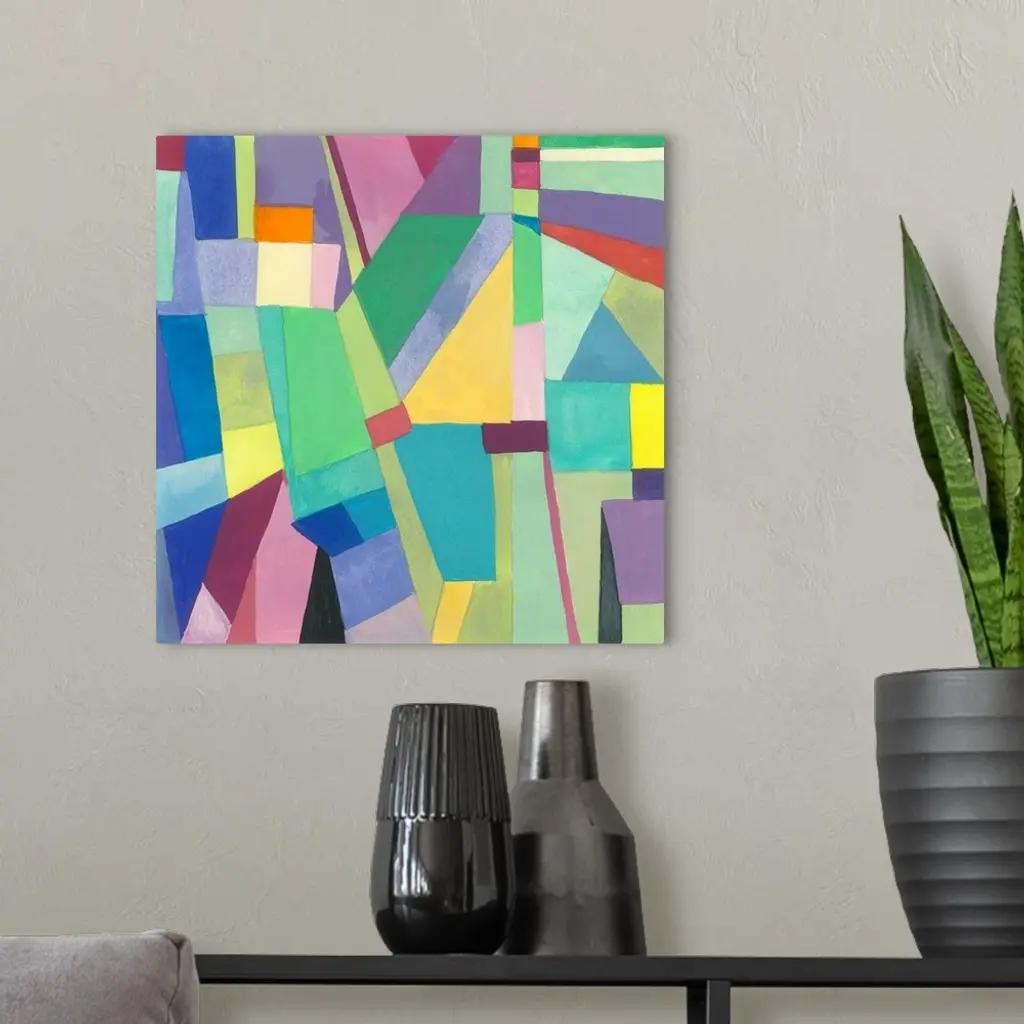 One painting in a series of geometric abstracts in vibrant colors depicting the artist's interpretation of well-known cities.