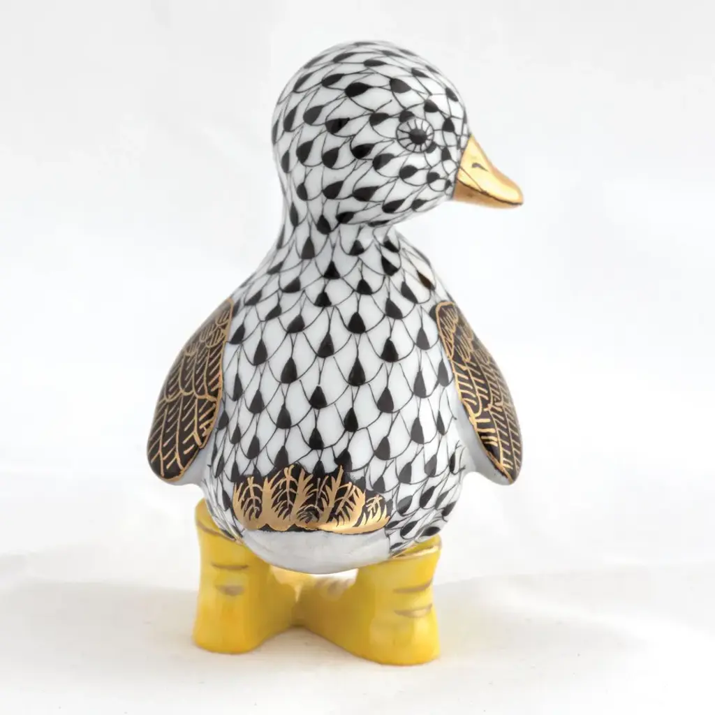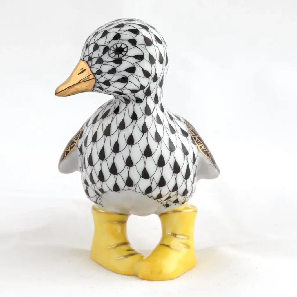 Endearing animals meek and bold, large and small, demure and majestic eagerly await the chance to melt your heart and warm your home. Each is brought to life by the skilled hands of artisans crafting and painting these charming porcelain creatures. The famous fishnet décor adorning many of the animals took form in 1858 when a Herend painter became inspired by a fishscale design he saw on a Chinese porcelain plate and painted a similar pattern onto a rooster figurine to imitate feathers. The rest is history, with the fishnet design now a Herend signature prized worldwide. Now the biggest porcelain manufactory in Europe, Herend was founded in 1826 to produce earthenware in the small Hungarian village for which it was named. At the time, Hungary was flooded with low-cost pottery, but in 1839, Mor Fischer became the Manufactory’s new owner and he decided to focus on producing dinnerware replacement pieces for Europe’s royal families to complement their valuable porcelain patterns from Germany and the Far East. As his client base grew, Fischer commissioned his artists to begin designing dinnerware patterns of their own. Queen Victoria’s 1851 purchase of a large set for Windsor Castle was a milestone, setting the stage for aristocrats throughout Europe to clamor for Herend in their estates. In the 1850s, Herend added meticulously-crafted figurines to its creations. Herend’s trademark fishnet pattern, which is widely recognized and prized as Herend’s signature design, started in 1858 when an artist who was intrigued with a Chinese plate’s fish scale design painted it onto a rooster figurine to imitate feathers.