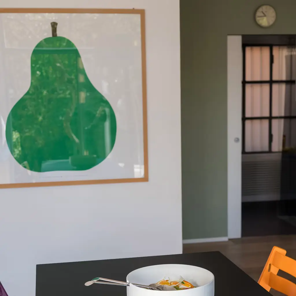 Soaring to a timeless allure, this stylish silkscreen print from the Serie della Natura Collection depicts the stylized silhouette of a pear in vibrant green. The lack of details is the result of a specific process that creates by subtracting, turning the image of a pear into the symbol of a pear with all the mental associations it may conjour in the mind of the observer.