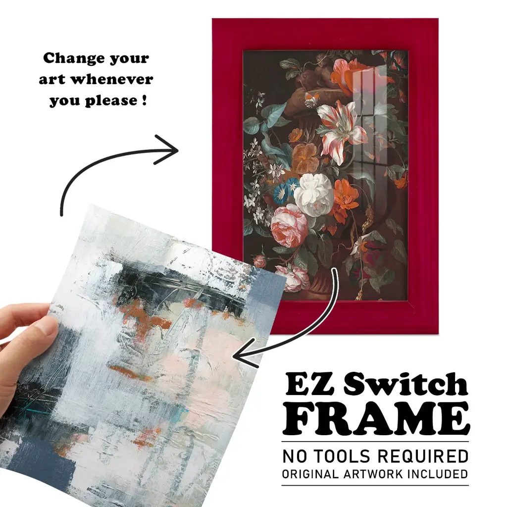 Dunbar IV -EZ SWITCH Framed Print w/glass-Cherry Red A delightful, framed print. Featuring a solid wood frame with real wood glass. This premium print is giclee quality. In addition, every frame features a removable back and table top stand. This allows you to change your art in the future or to just stand the art on a table for a new look. We are sure you'll enjoy our new series of EZ SWITCH Framed Art. Solid Wood Frame Real Glass Removable / Replaceable Art Built in Tabletop Stand Sizes range from 4x6 up to 12x15 - buy just one or pair them up as sets as you see fit.