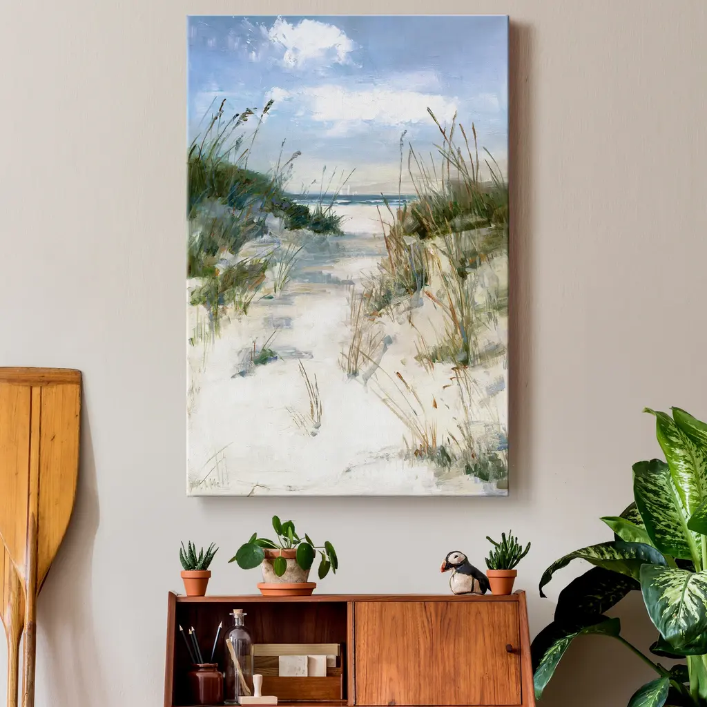 Dune View-Premium Gallery Wrapped Canvas - Ready to Hang A premium hand stretched gallery wrapped canvas print created to last. Featuring a beveled a solid wood stretcher bar, each piece comes ready to hand 5 SIZES AVAILABLE 8''X12'' - Overall Size 12''X18'' - Overall Size 18''x27'' - Overall Size 24''x36'' - Overall Size 32''x48'' - Overall Size Each piece is made to order. Built to Last Each piece comes ready to hang Solid wood stretcher Fade and Water resistant Made domestically