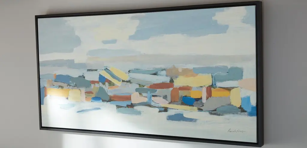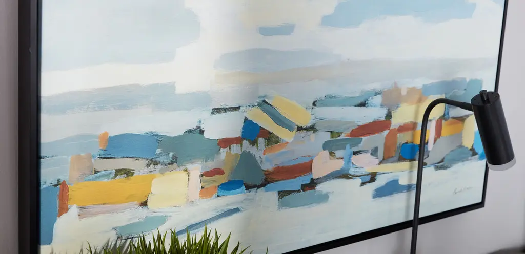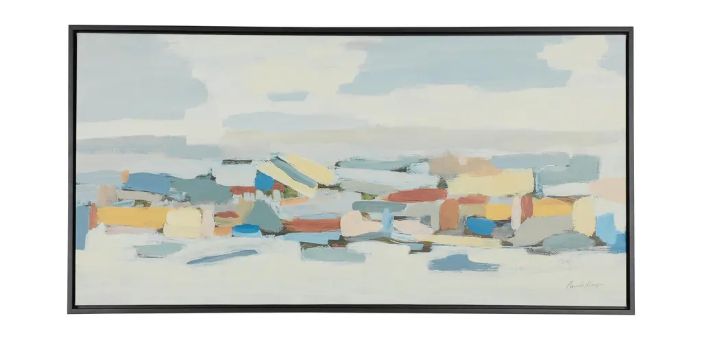 What you see when you gaze at this contemporary abstract by artist Pamela Munger is completely open to interpretation. Shape and texture combine with a mix of muted and vivid colors to create an instant focal point—and a guaranteed conversation starter.