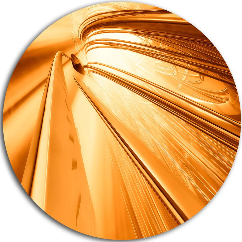 Dynamic Golden Waves, Abstract Digital Art Round Metal Wall Art, 11"