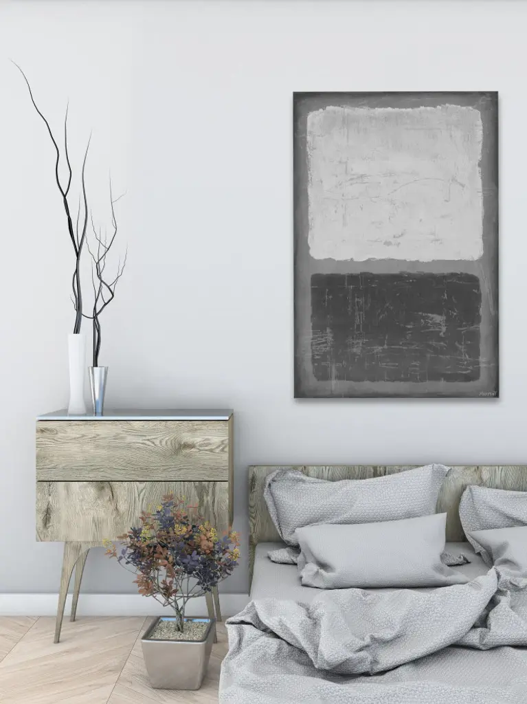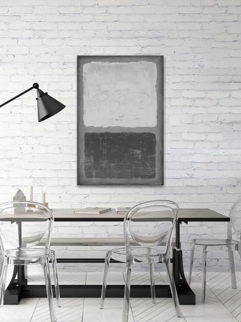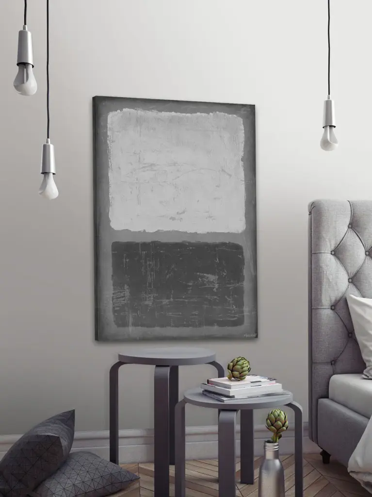 This exquisite oil painting print features a geometrical abstract design made up of grey and white. Proudly made in the USA, this piece is printed on canvas before it- s stretched over non-warping wooden bars for a gallery-wrapped look. With wall-mounting hooks included, this artful accent is ready to hang up as soon as it reaches your front door.- Fine art canvas print from the Marmont Hill Art Collective- Professionally hand stretched- Gallery wrapped in sustainable, non-warping wood- Arrives ready to hang- Made in the USA- Includes a certificate of authenticity
