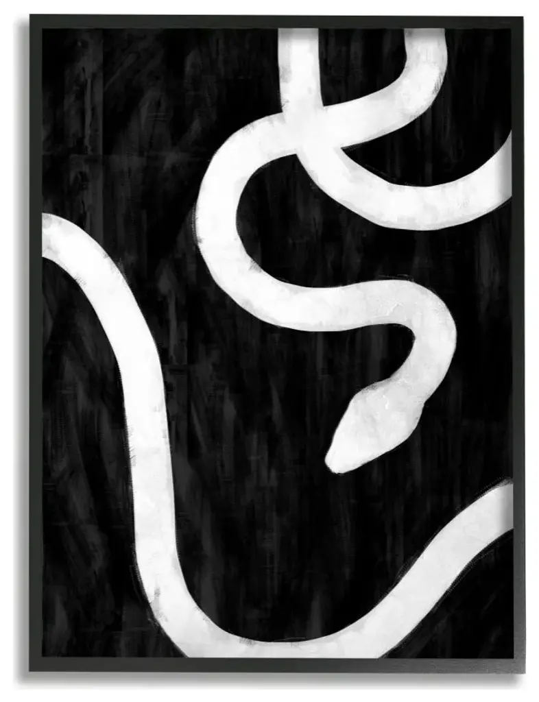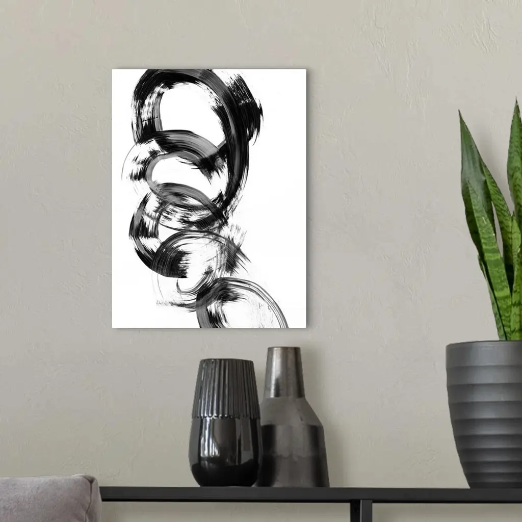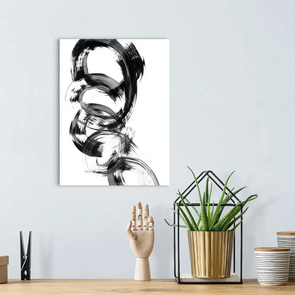 Contemporary abstract painting of interlocking circular shapes in black and white.