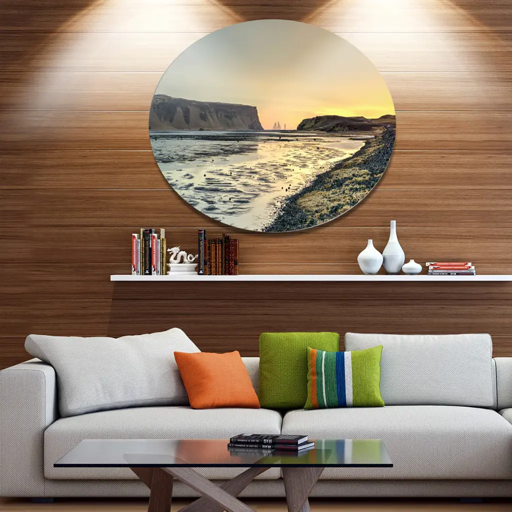 Dyrholaey View Unto Reynisfjara, Seashore Large Disc Metal Artwork, 11"