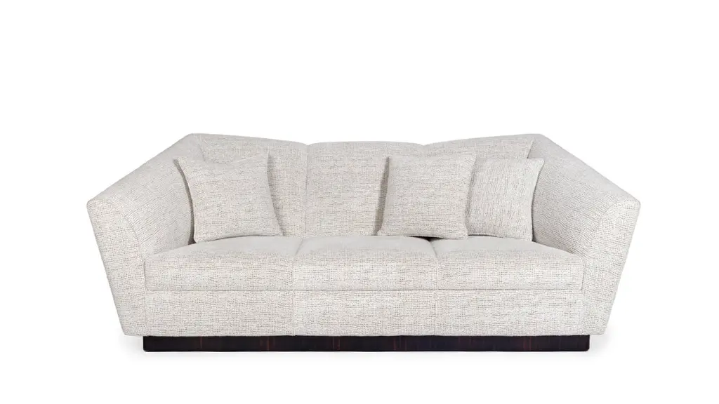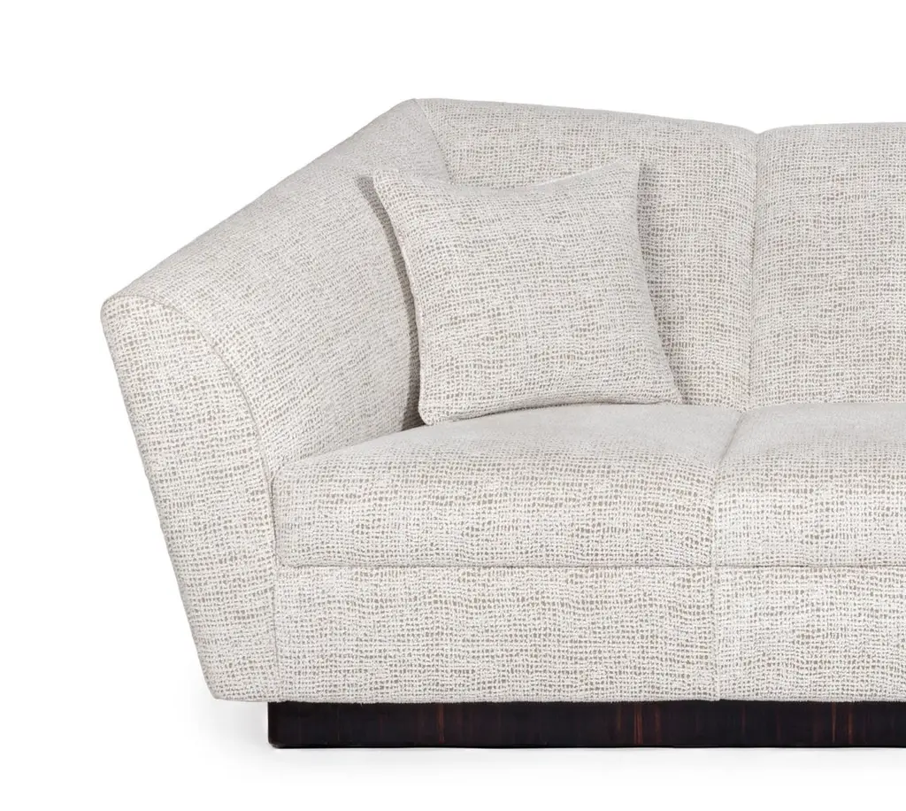 Eagle 3 Seat Sofa by InsidherLandDimensions: D 95 x W 235 x H 93 cm.Materials: Wooden base, ebony veneer, InsidherLand Grid Ref. 6 fabric.60 kg.Available in different fabrics.Inspired by the story of the Kazakh Eagle Hunters, the profile of the Eagle sofa presents the exact shapes of the golden eagles massive wings. While opened, the long feathers of these birds are perfectly aligned, creating a beautiful effect. This vertical alignment is achieved by the surrounding wood base in striped Ebony Macassar.Entirely handcrafted in velvet, this luxurious grand sofa is not only a tribute to the splendid golden eagle but mostly to the mutual aid and complicity between the hunters and their eagles. To celebrate their bound, the velvet color chosen of the original sofa precisely matches the tone of the hats that the eagle hunters wear during the hunt.With this heartening story we may reflect that Mankind does not rule in nature but should respectfully establish with it the most profound connections.Created by Architect Joana Santos Barbosa in 2012, InsidherLand is a Portuguese brand of exclusive design. Drawn with the signature of the creator, the impressive range of contemporary luxury furniture, lighting, upholstery and accessories are connected to her personal memories and have been highlighted for their innovative and soulful designs.Joana explores several influences from travels around the world to define her own Land as a place that allows her to translate her perceptions into objects of art.The essence of InsidherLand is presented by two inspiring collections. Beyond Memory Collection is deeply influenced by organic forms of nature, legends and traditional cultures, as for the Identity Collection is molded by forms of Architecture and Art. Both collections are designed as a dialog in which nature meets strong architectural lines to create relaxed and sophisticated interiors surrounded by natural materials and meaningful art pieces.Being positioned in strategic markets of high-end luxury decoration, InsidherLand team is proud of working with the best architects and interior design studios from all over the world who seek for handmade exclusive objects that arouse emotions and stand out in exquisite spaces.We are dedicated with love and enthusiasm into every creation to surprise a sensitive but demanding public. Using the expertise of traditional craft techniques, all creations are made by the hands of Portuguese master craftsmen and jewelers who wisely sculpt them in noble materials, finalizing every detail with elegance and perfection.