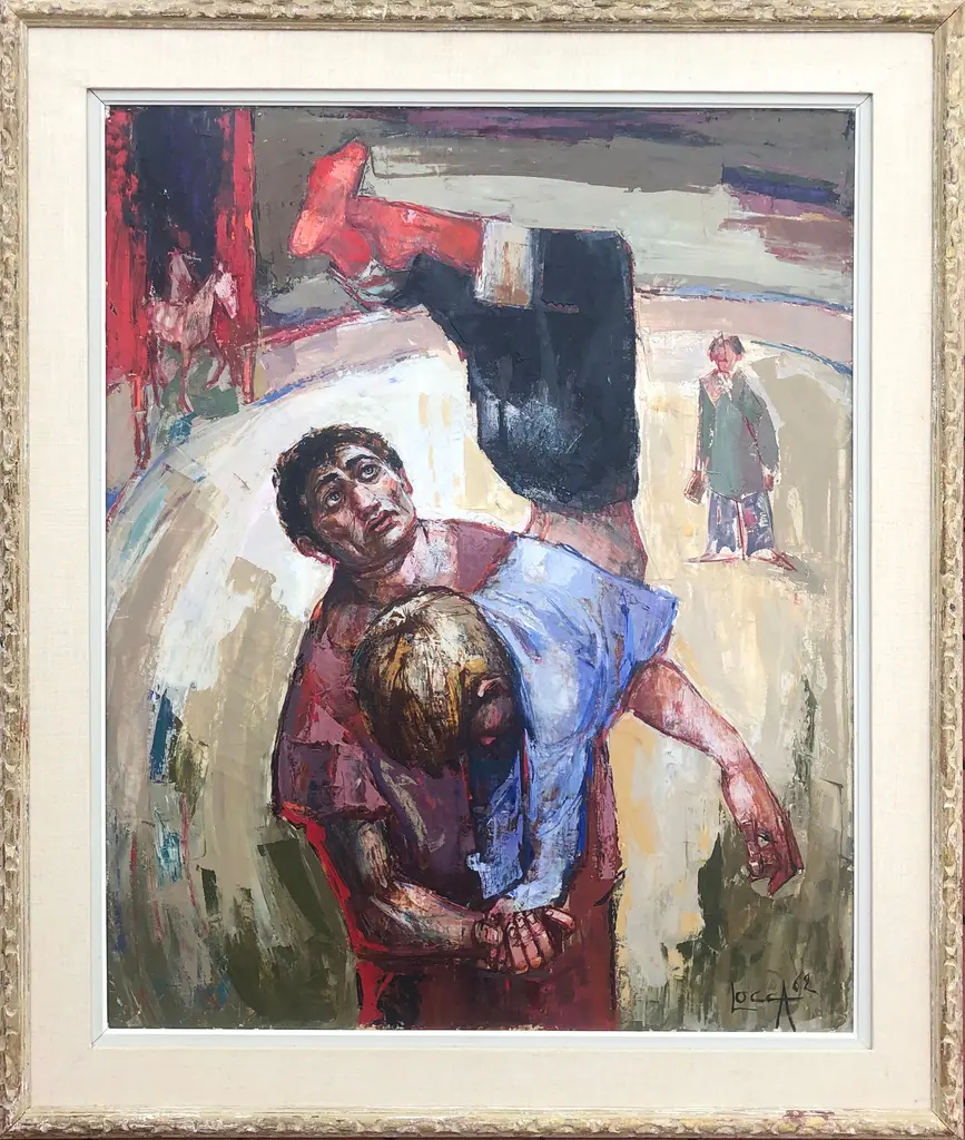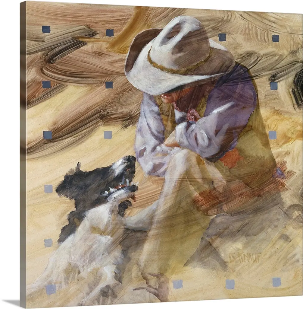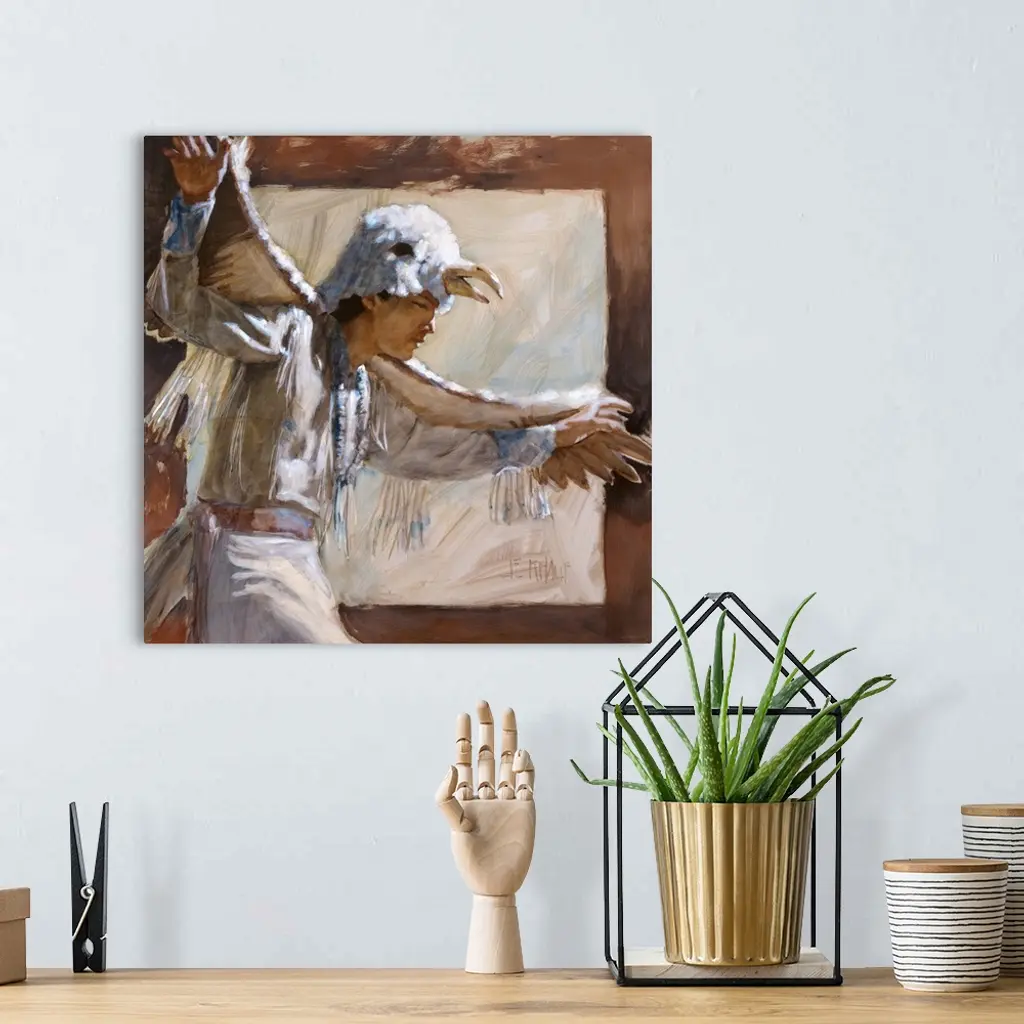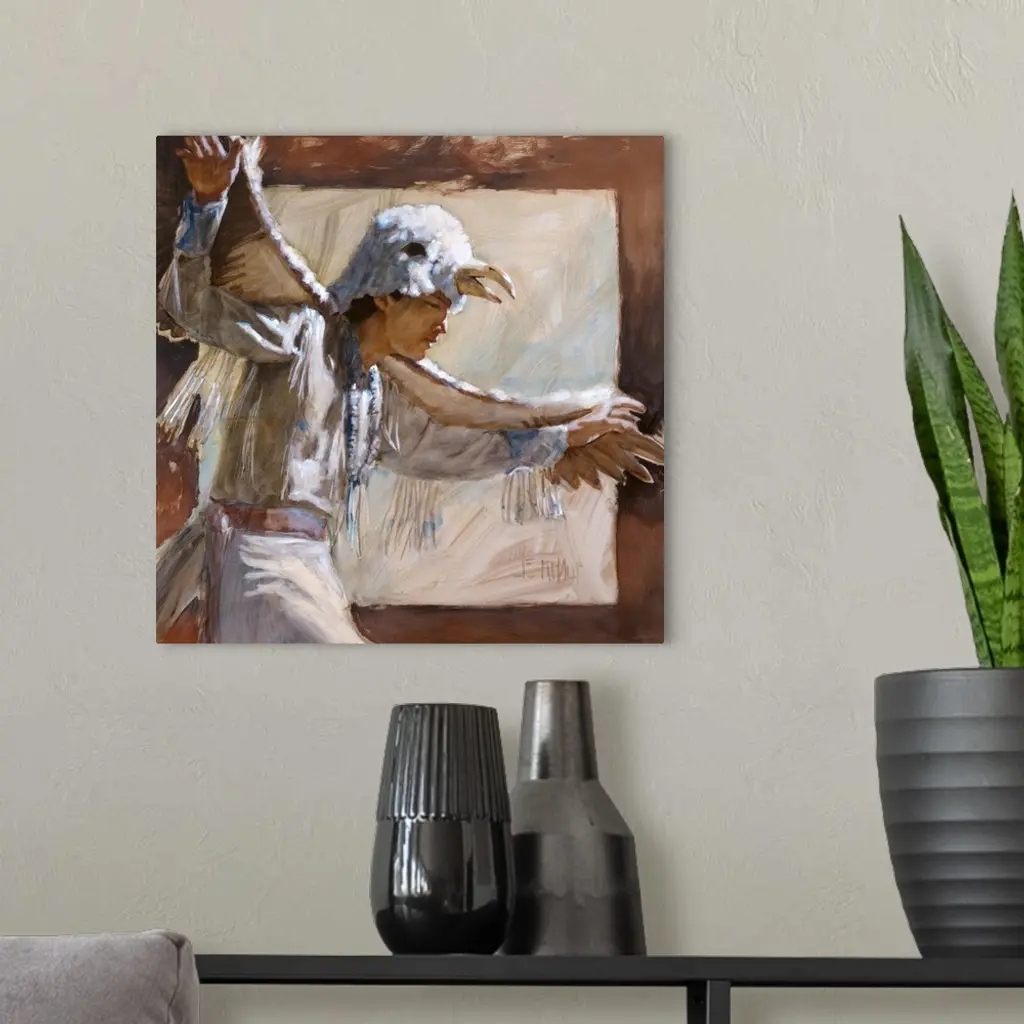 Western themed contemporary painting of a traditionally dressed Native American performing ceremonial dance.