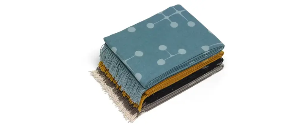 Like many other prominent twentiethcentury architects and designers, Charles and Ray Eames also sought to implement their ideas about colours, shapes and materials in the design of textiles. The ‚Dot Pattern‘ was created in 1947 in conjunction with an exhibition at the Museum of Modern Art in New York. The pattern is a large-scale graphic composition made up of crosses and dots, thereby referencing the abstract paintings by Ray Eames from the 1930s.Materials:- Material: 100 % Merino lambswool, produced in a jacquard weave.- Characteristics: Merino lambswool is a high-quality natural fibre obtained from the first shearing of Merino lambs. It is extremely light, fine and soft to the touch while also providing optimal warmth and thermal balance.- Quality: considerable technical expertise and manual skill is required to process the premium natural fibres. For this reason, Vitra blankets are made by a German blanket manufacturer with over 100 years of experience in fabricating products from natural fibres. Their expert hand craftsmanship ensures the high-quality execution of the designs.