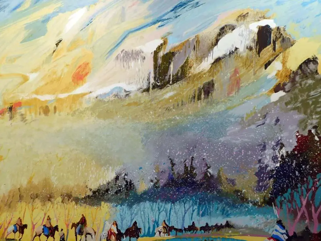 "Spring of The Rainbow Warriors" Original Limited Edition Serigraph on paper by Earl Biss Hand Signed by the Artist Art size : 30" x 37" Edition Size: 300 Condition: Mint Certificate of Authenticity and appraisal is included Earl Biss 1947-1998 Artist Earl Biss was a member of the Crow Nation. He had a fine classical education in the arts; graduating from the Institute of American Indian Arts in Santa Fe, New Mexico, followed by several years of study at the San Francisco Art Institute, Biss continued with a year of independent study in Europe. Earl Biss's works are alive in imagination, with flowing, textured strokes of color and form conveying the moods wonder in the dreams and hopes of an exciting people who are his own, the Crow Indian. A member of the Crow Nation, Earl Biss was one of the most prominent American Indian artists. His paintings are hanging in museums around the world.