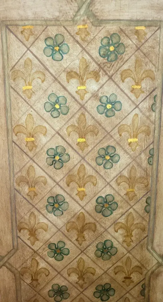 Early 20c Hand Painted Large Sized Ceiling Or Wall Panels By Nena Claiborne