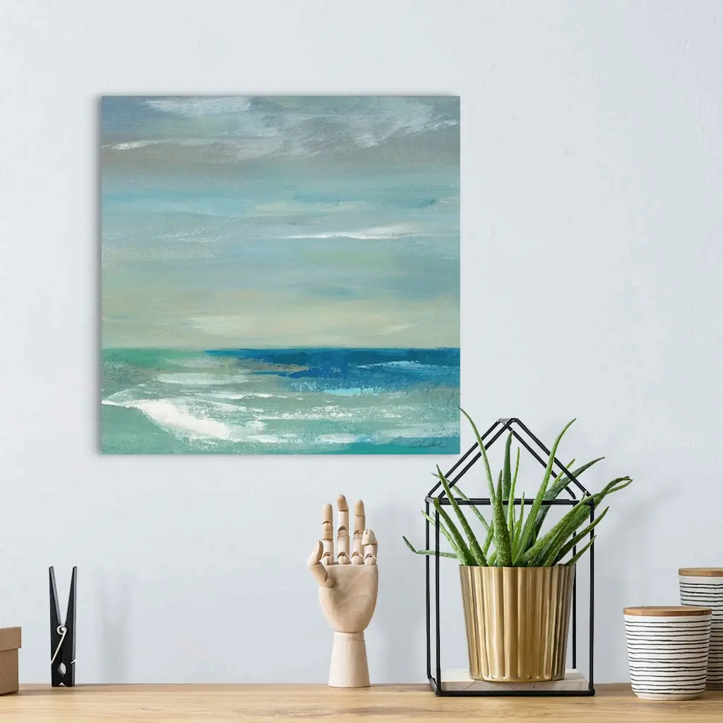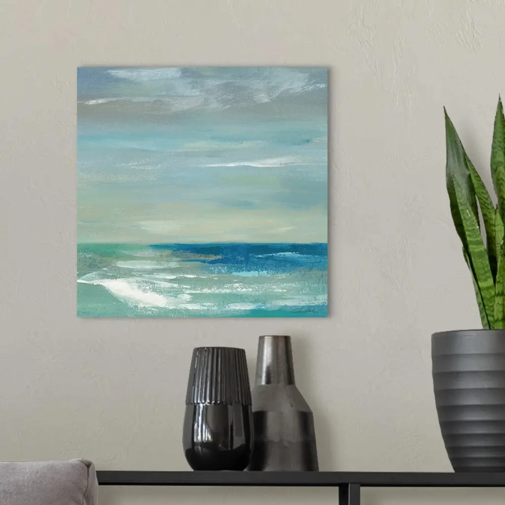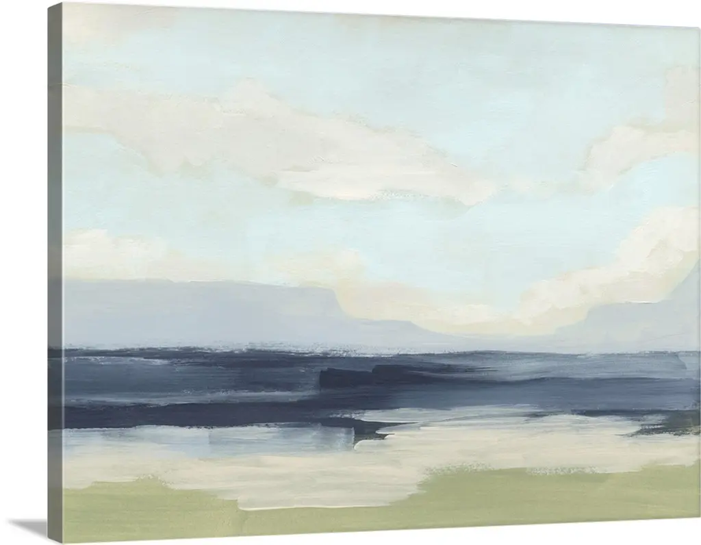 Contemporary artwork of a calm ocean and sky.