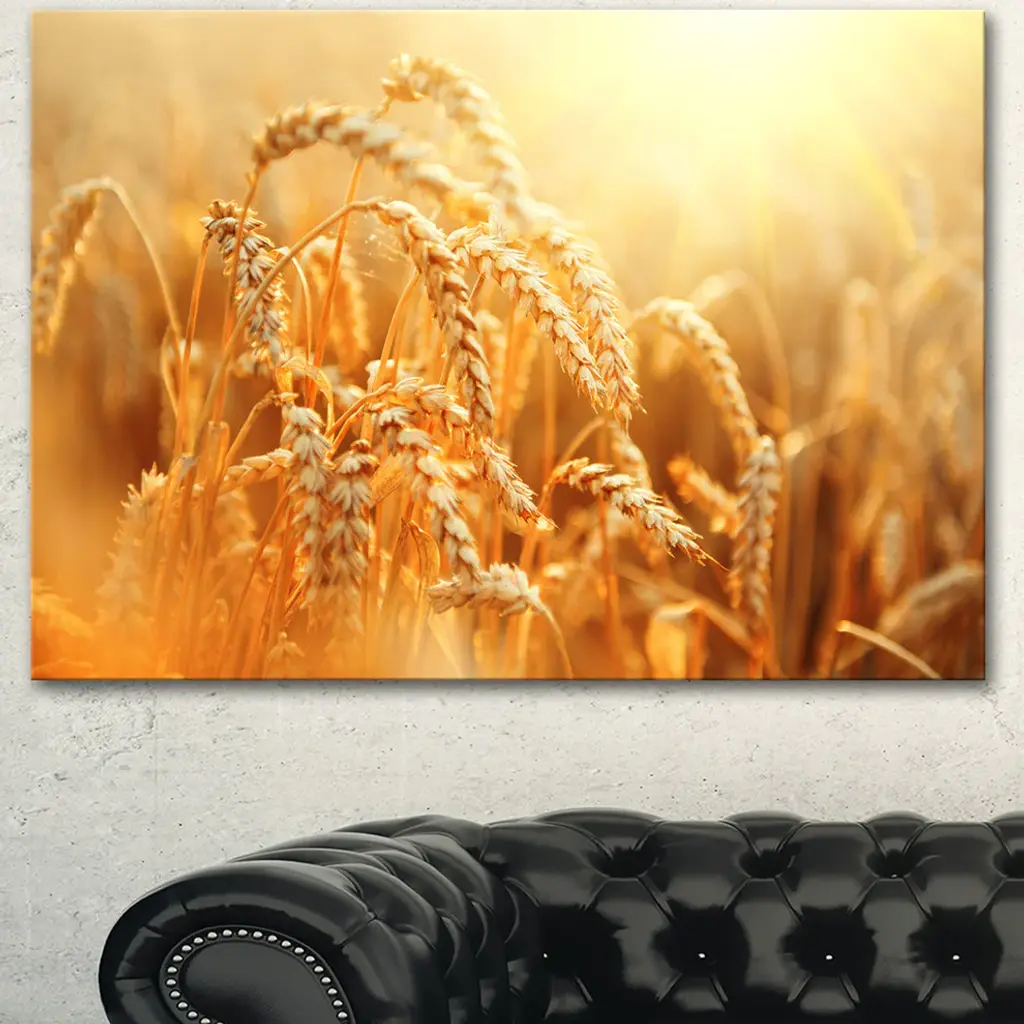Ears Of Golden Wheat Close Up, Large Landscape Canvas Art, 60"x28"