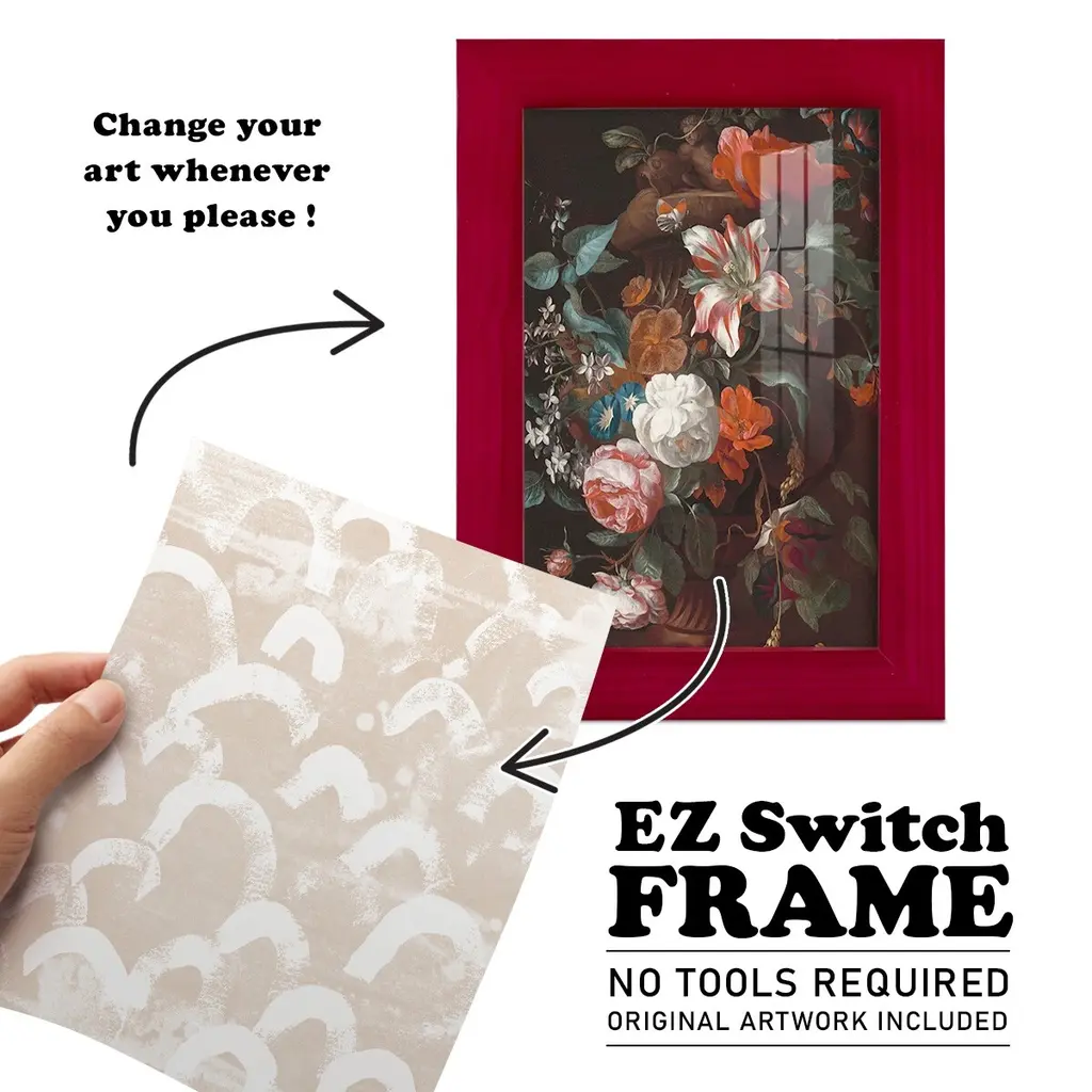 Earth Etching II -EZ SWITCH Framed Print w/glass-Cherry Red A delightful, framed print. Featuring a solid wood frame with real wood glass. This premium print is giclee quality. In addition, every frame features a removable back and table top stand. This allows you to change your art in the future or to just stand the art on a table for a new look. We are sure you'll enjoy our new series of EZ SWITCH Framed Art. Solid Wood Frame Real Glass Removable / Replaceable Art Built in Tabletop Stand Sizes range from 4x6 up to 12x15 - buy just one or pair them up as sets as you see fit.