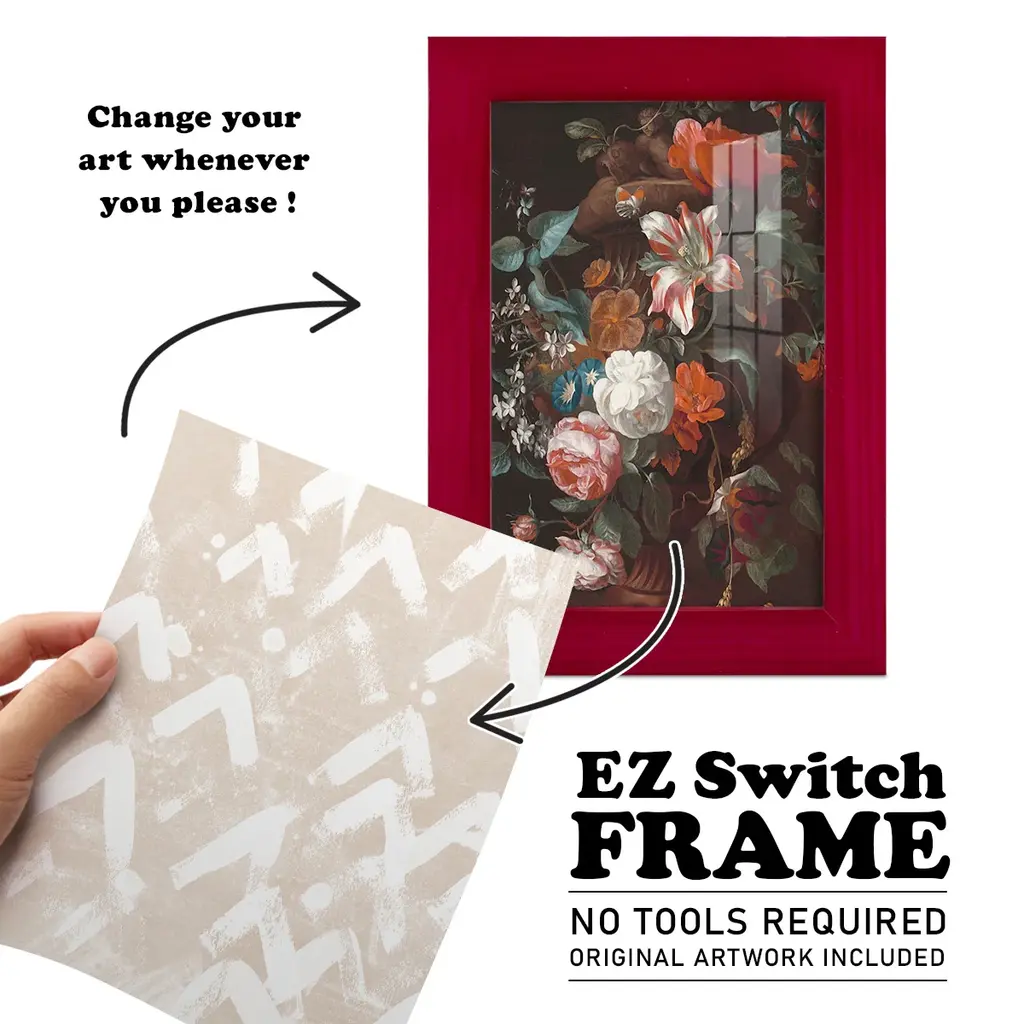 Earth Etching III -EZ SWITCH Framed Print w/glass-Cherry Red A delightful, framed print. Featuring a solid wood frame with real wood glass. This premium print is giclee quality. In addition, every frame features a removable back and table top stand. This allows you to change your art in the future or to just stand the art on a table for a new look. We are sure you'll enjoy our new series of EZ SWITCH Framed Art. Solid Wood Frame Real Glass Removable / Replaceable Art Built in Tabletop Stand Sizes range from 4x6 up to 12x15 - buy just one or pair them up as sets as you see fit.
