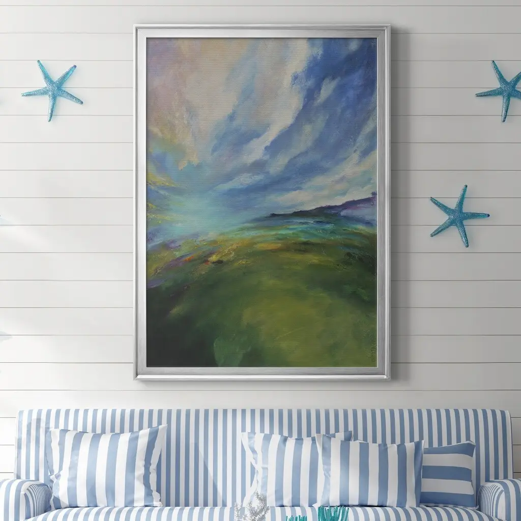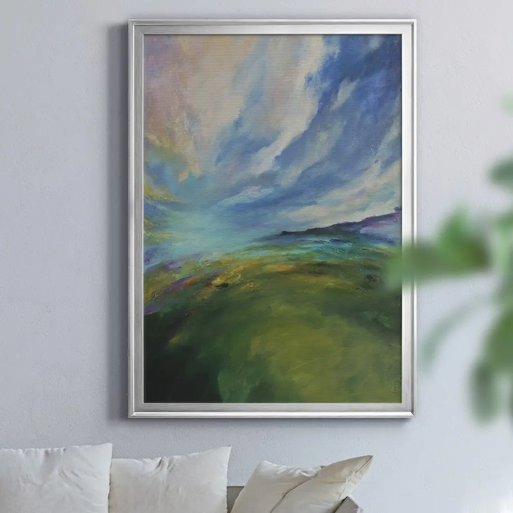 Earth Magic II Premium Framed Canvas - Ready to Hang A Premium Framed Canvas created to last. Framed in distressed wood and available in an array of sizes and colors Featuring a beveled a solid wood stretcher bar, each piece comes ready to hand 4 SIZES AVAILABLE 30.5''X42.5'' - Overall Size 26.5'X36.5'' - Overall Size 22''x30'' - Overall Size 18''x24'' - Overall Size Each piece is made to order. Each piece comes with hanging hardware. Made in the USA Ready to Hang Giclee Paper Print Acrylic Glass Beveled Matt Board