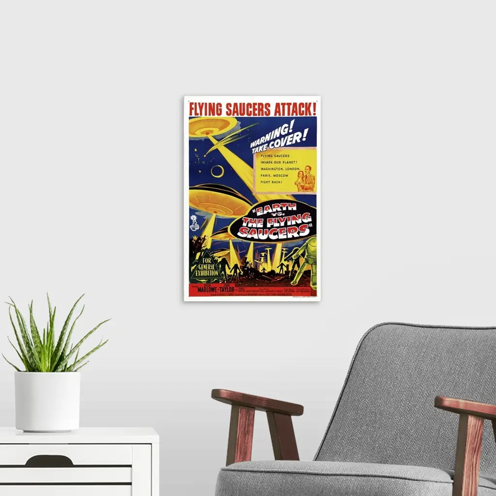 Earth Vs. The Flying Saucers - Vintage Movie Poster wall art for home and office decor. Discover canvas art prints, photos, mural, big canvas art and framed wall art in GreatBigCanvas.com's varied collections.